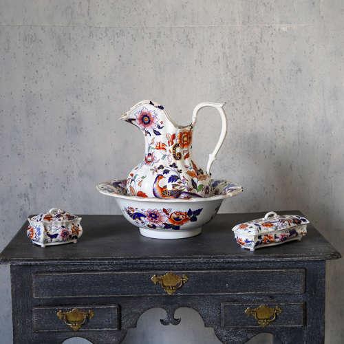 Antique Victorian Quality Masons Ironstone Jug & Bowl Set (4 Pieces)