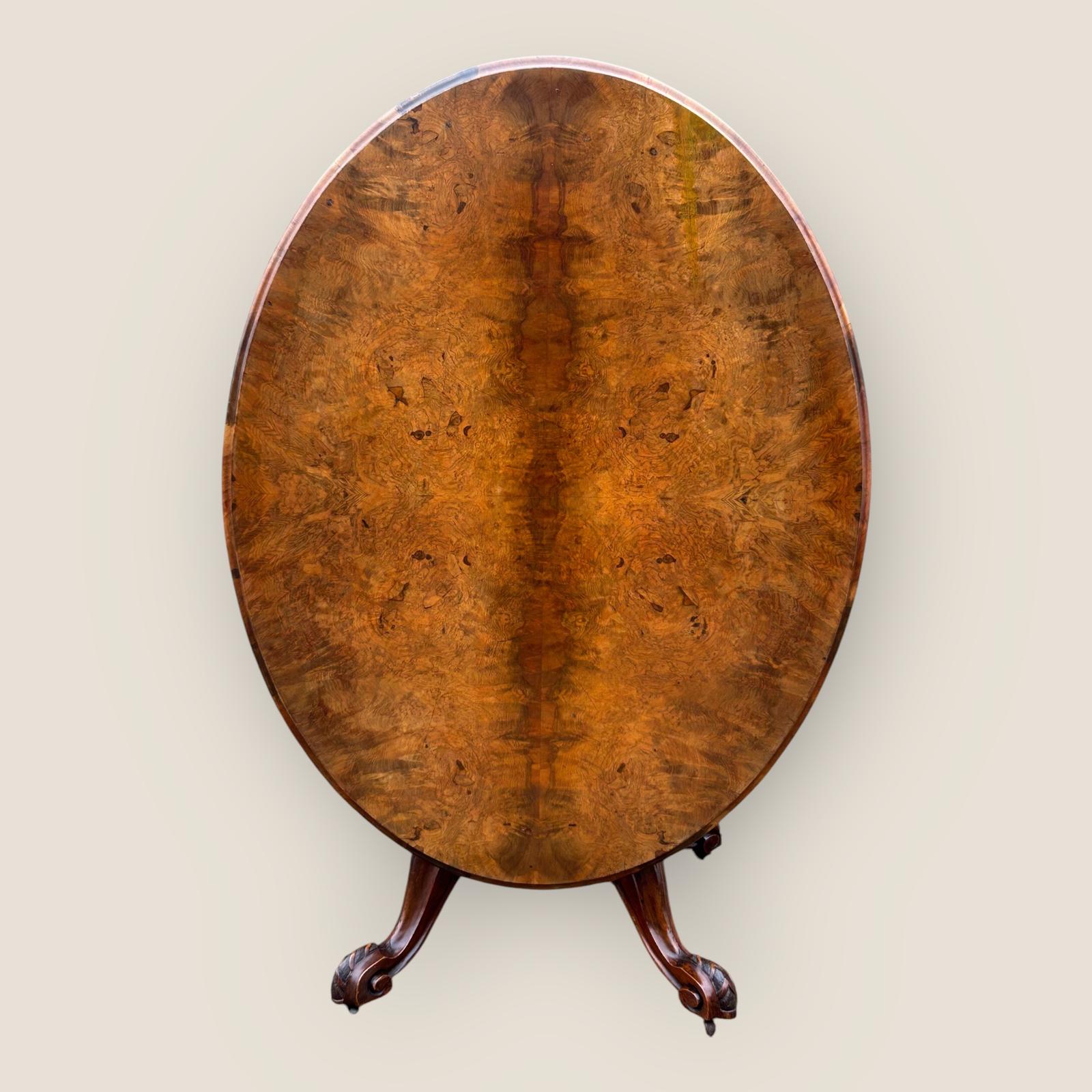 Antique Victorian Quarter Veneered Burr Walnut Loo Centre Table with Carved Base