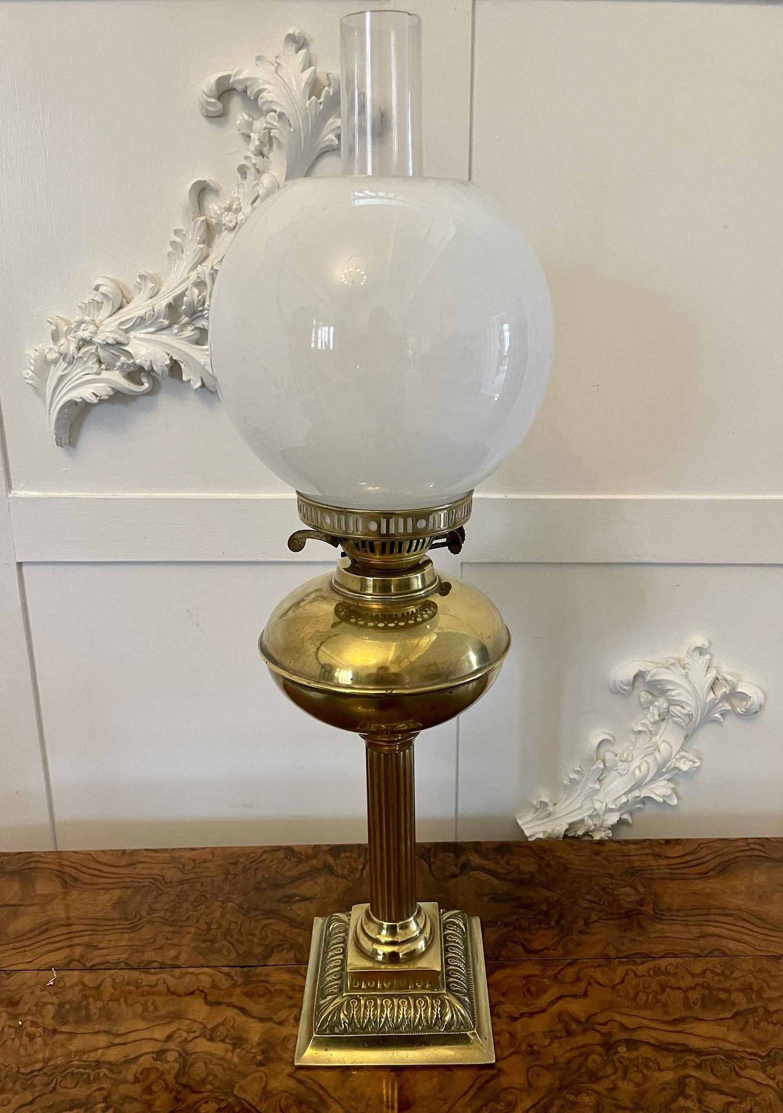 Antique Victorian Reeded Column Quality Brass Oil Lamp