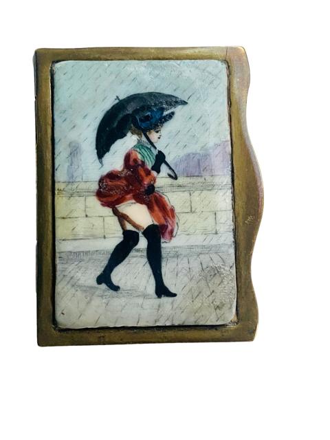 Antique Victorian Risque Erotic Enamel Vesta Match Safe Striker c.1900 (1 of 10)