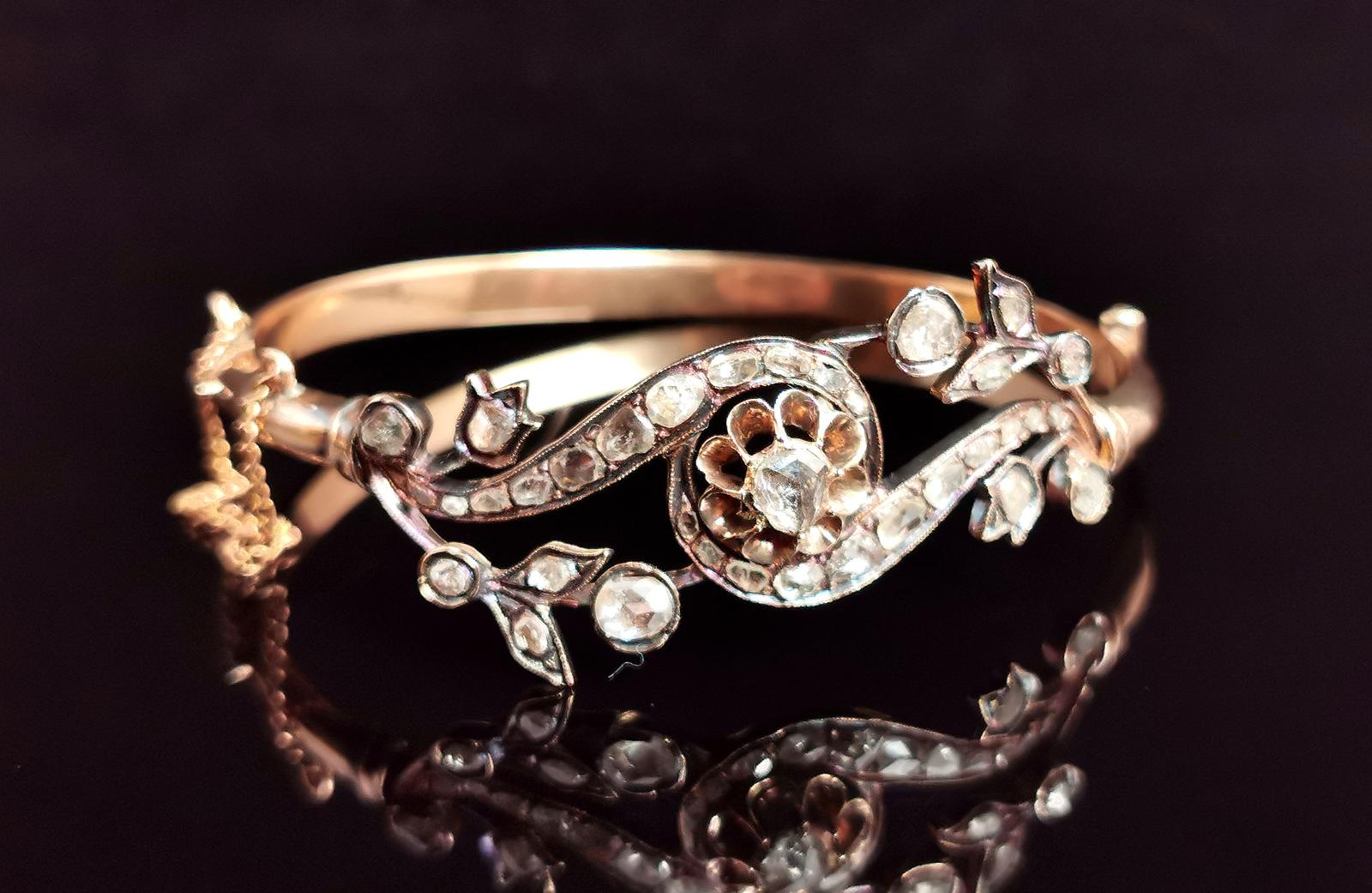 Antique Victorian Rose Cut Diamond Bangle, 18ct Gold