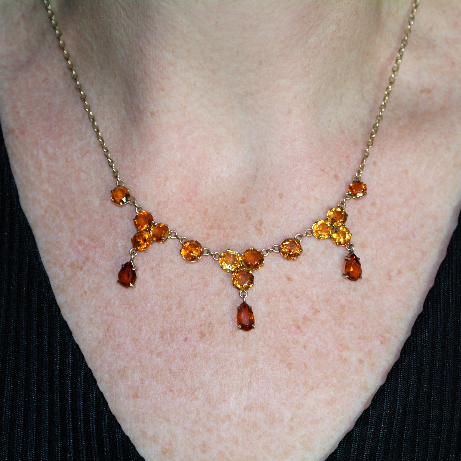 Antique Victorian Rose Gold Citrine Necklace Fringe Style Beautiful Clusters Barrel Clasp Necklace