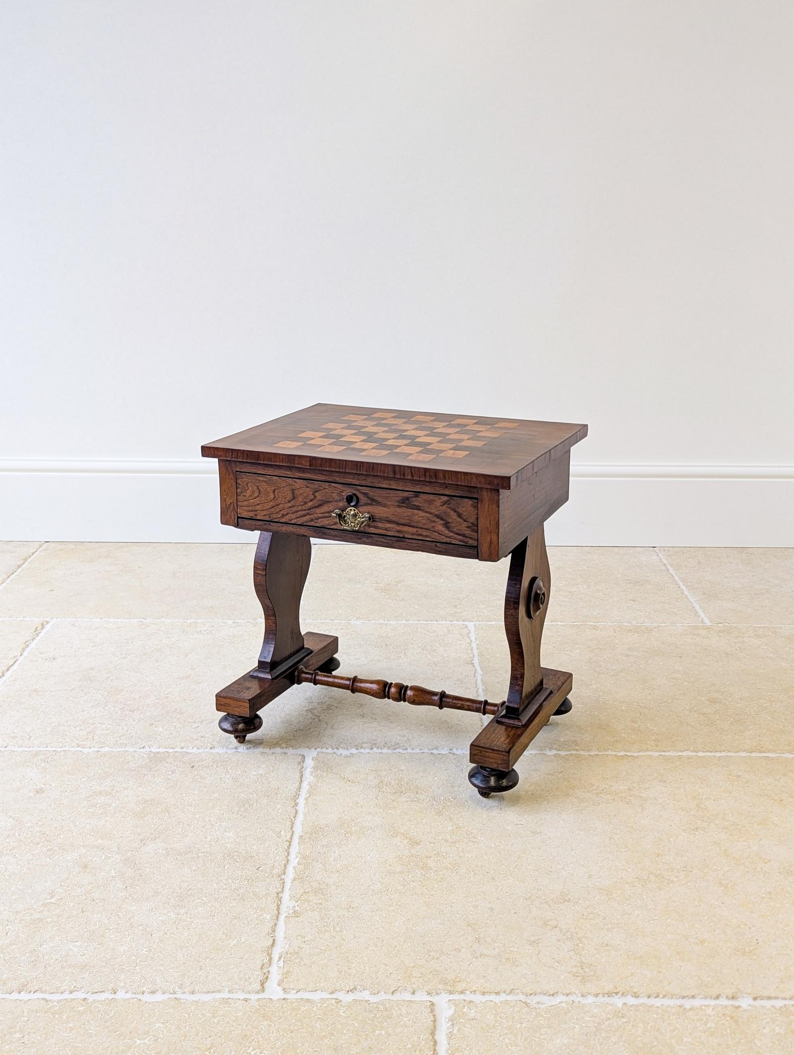 Antique Victorian Rosewood Games Table with Chess Table Top c.1890