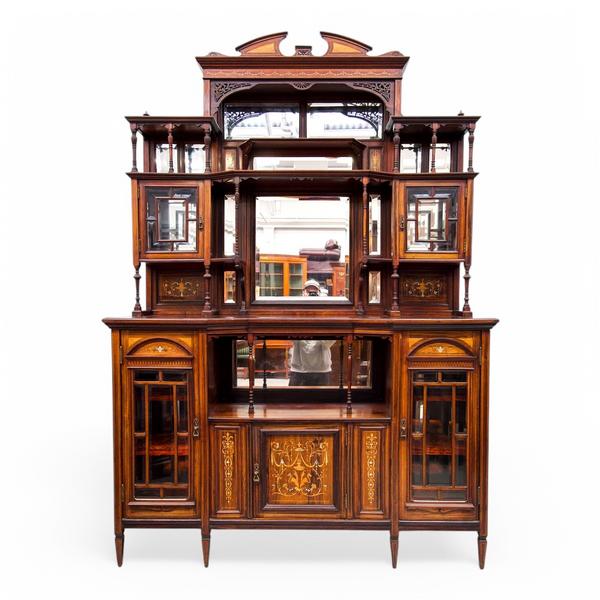 Antique Victorian Rosewood Inlaid Display Cabinet