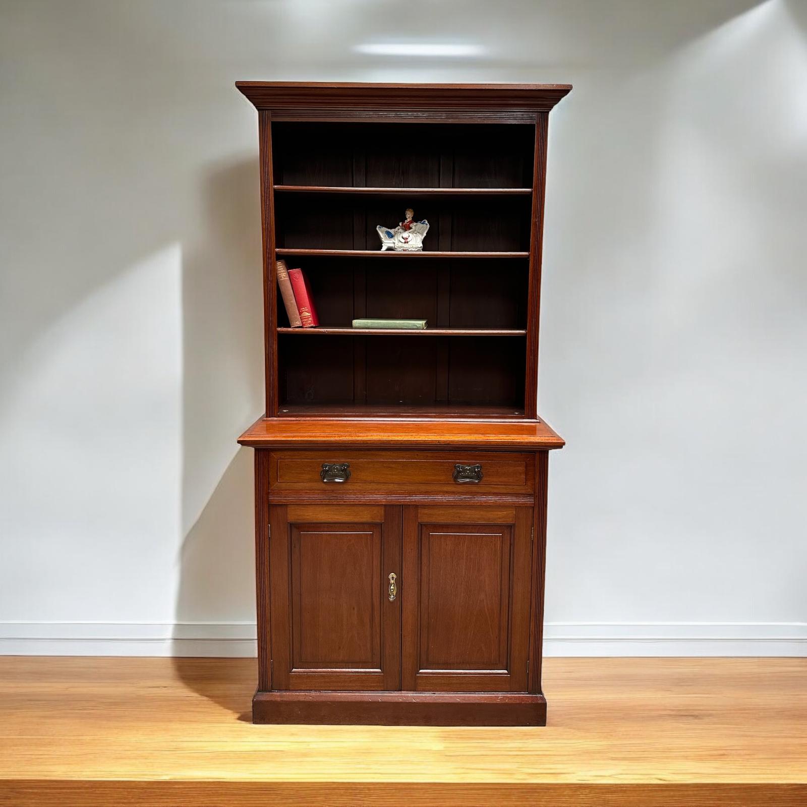 Antique Victorian Rosewood Open Bookcase with Cupboard - Mid 19th Century
