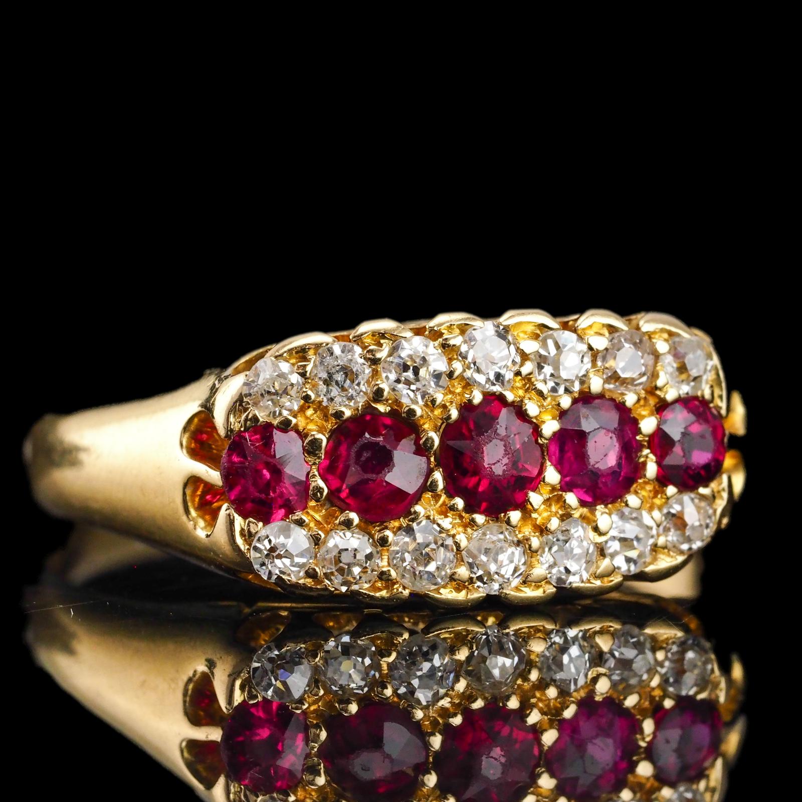 Antique Victorian Ruby & Diamond 18ct Gold Cluster Boat Shaped Ring - 1896 (1 of 15)