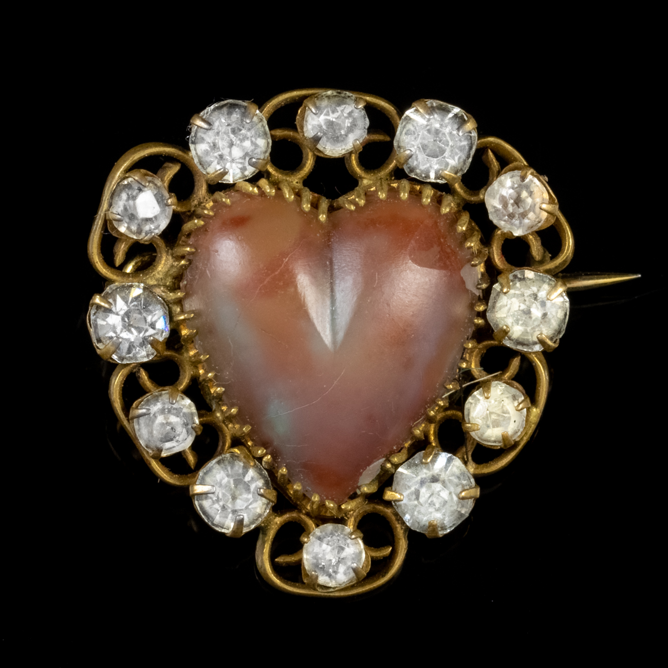 Antique Victorian Saphiret Heart Paste Stone Brooch c.1900