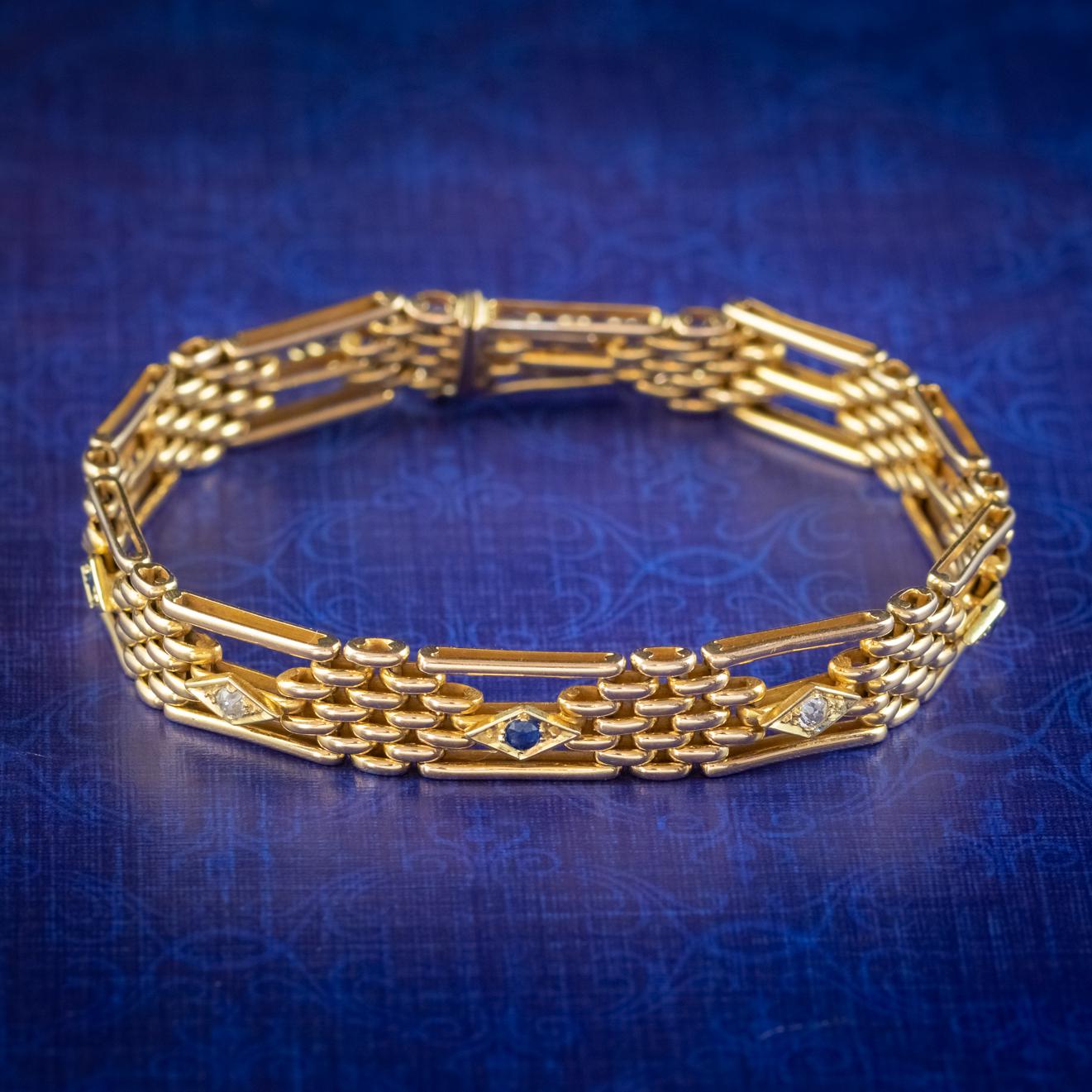 Antique Victorian Sapphire Diamond Gate Bracelet 15ct Gold c.1900
