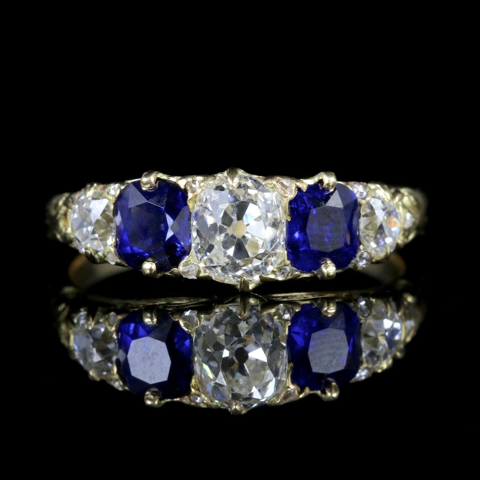 Antique Victorian Sapphire Diamond Ring 18ct 5 Stone Ring c.1880