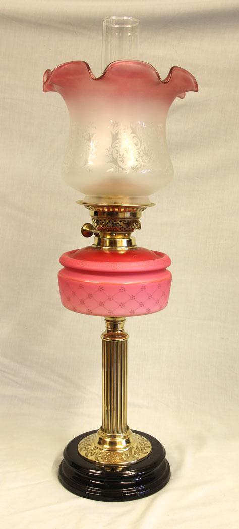 Antique Victorian Satin Pink Oil Lamp