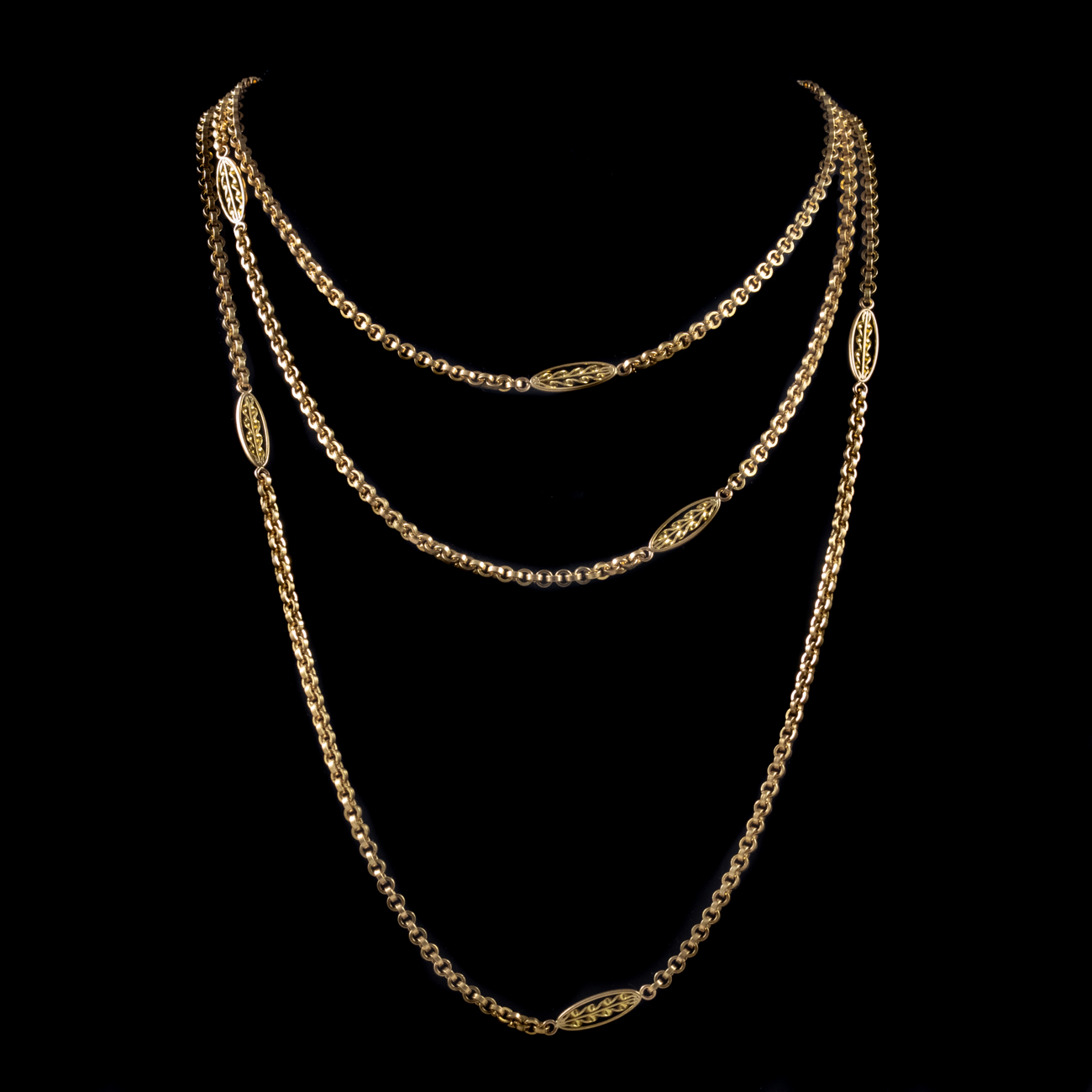 Antique Victorian Sautoir Chain Necklace 18ct Gold Silver c.1860