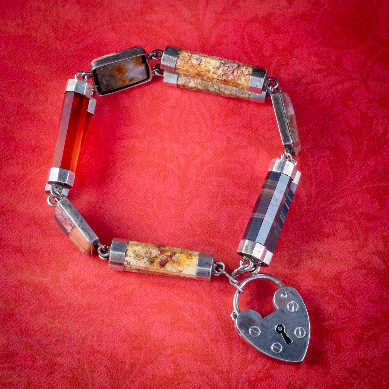 Antique Victorian Scottish Agate Bracelet Sterling Silver Heart Padlock c.1860