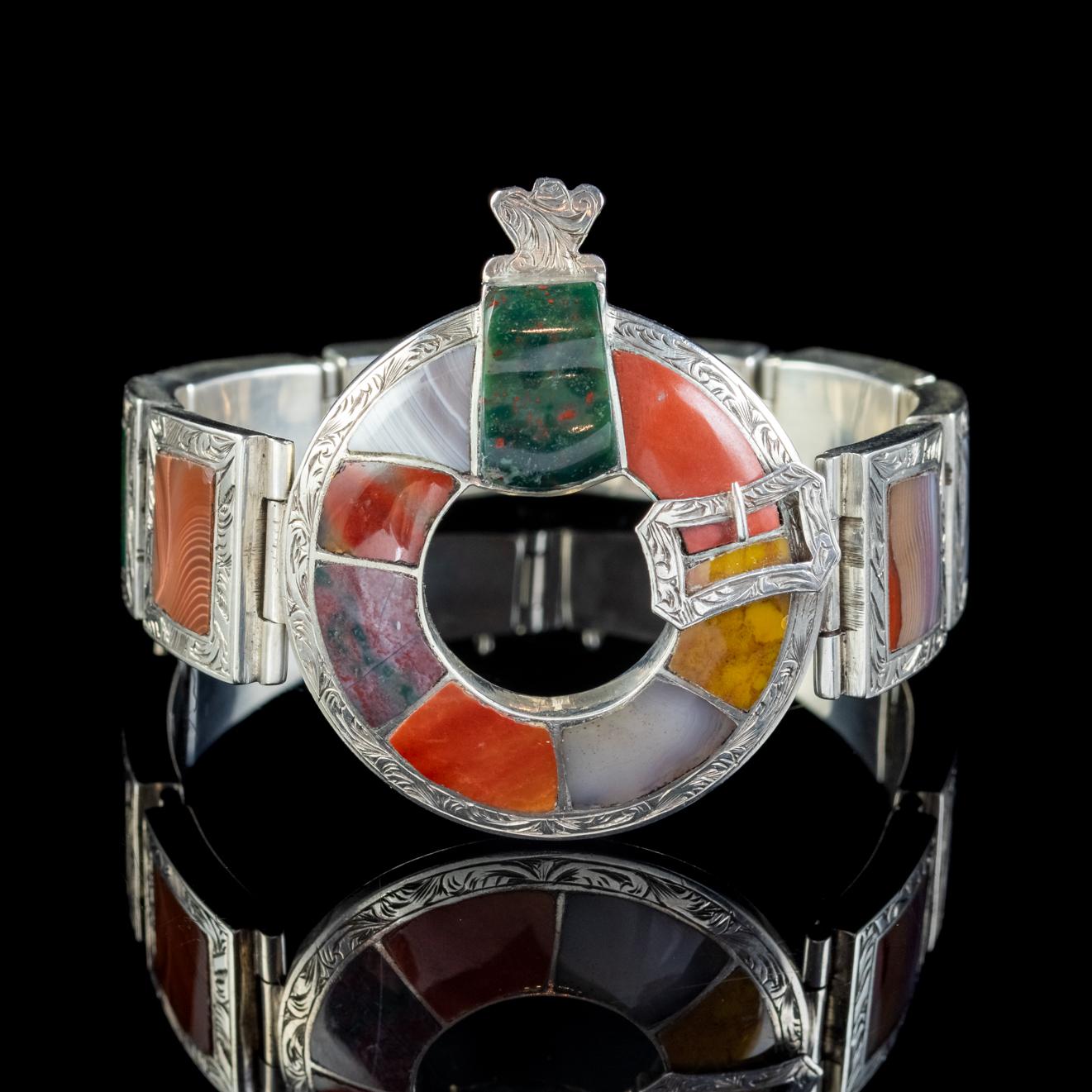 Antique Victorian Scottish Agate Buckle Bracelet Silver c.1860