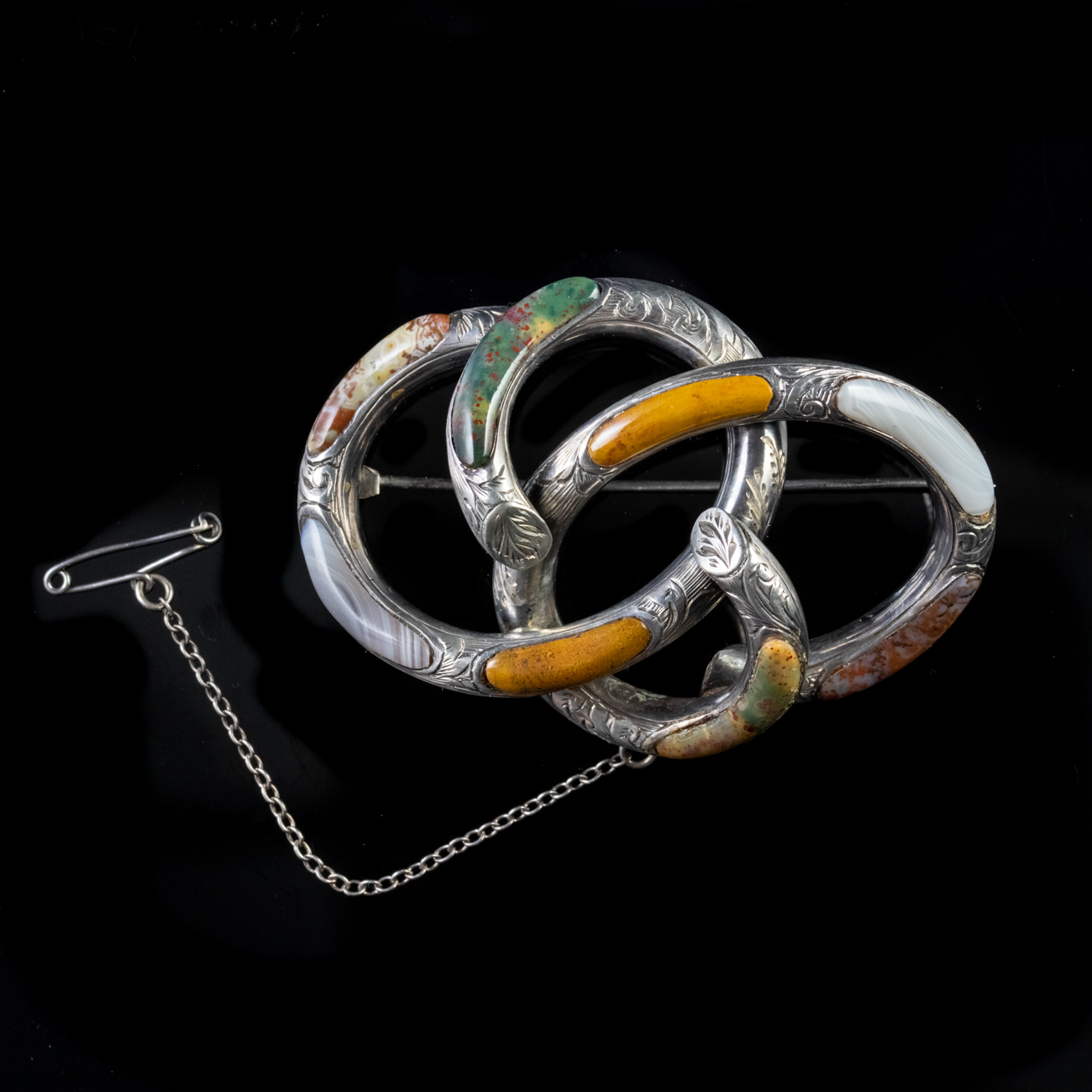 Antique Victorian Scottish Agate Knot Brooch Silver c.1860