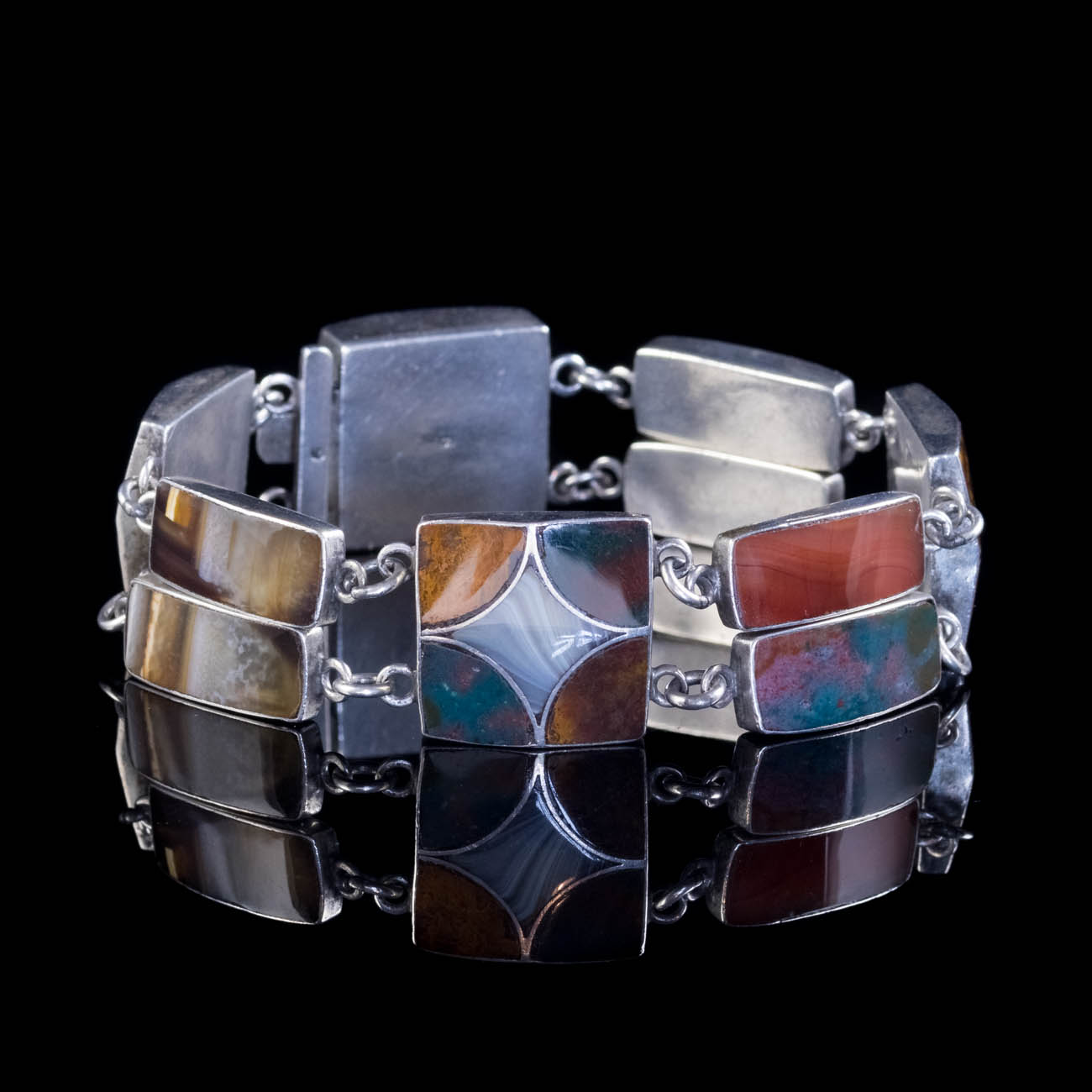 Antique Victorian Scottish Agate Link Bracelet Silver c.1860