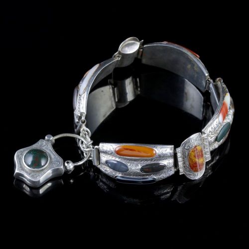 Antique Victorian Scottish Bracelet Agate Padlock Silver c.1860