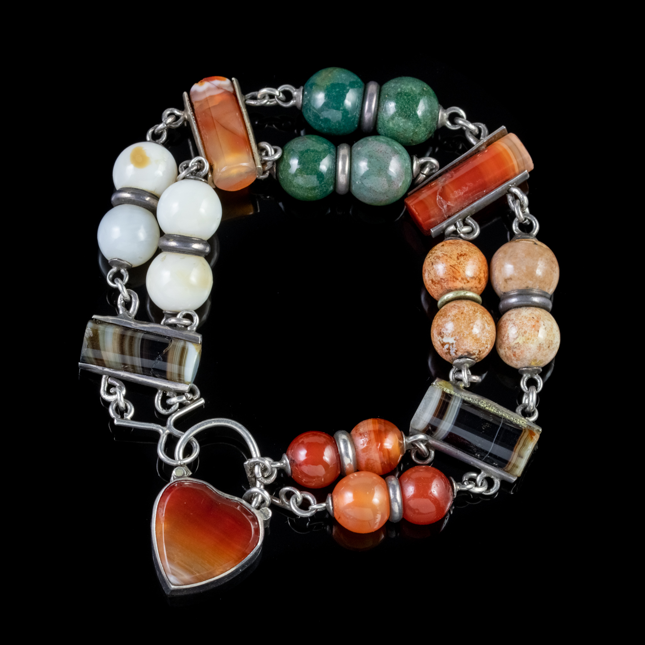 Antique Victorian Scottish Bracelet Silver Agate Heart Padlock c.1860