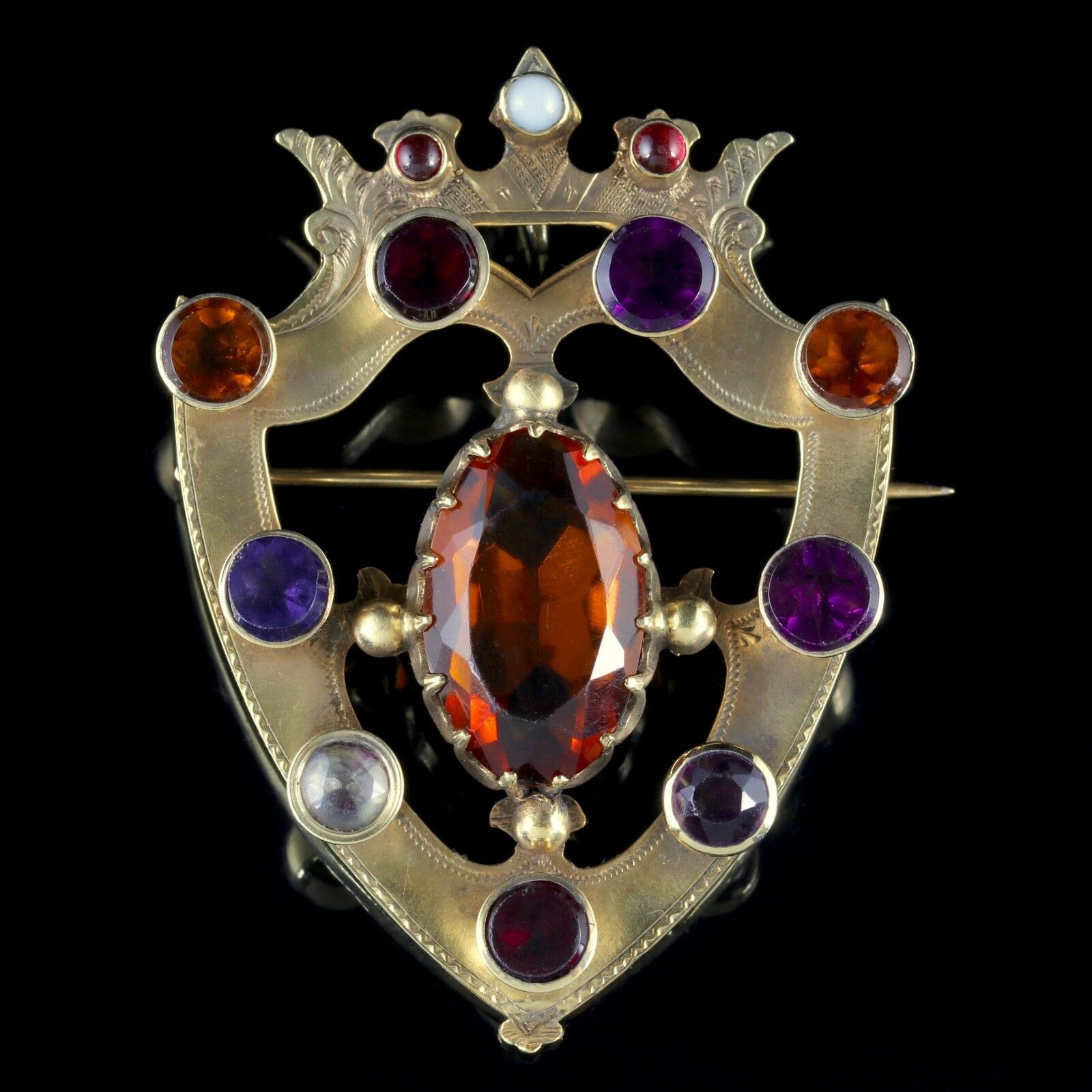 Antique Victorian Scottish Brooch 18ct Gold Silver Shield c.1880