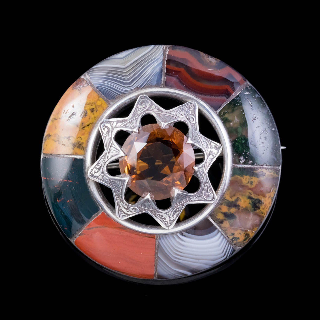 Antique Victorian Scottish Cairngorm Agate Brooch Sterling Silver c.1860