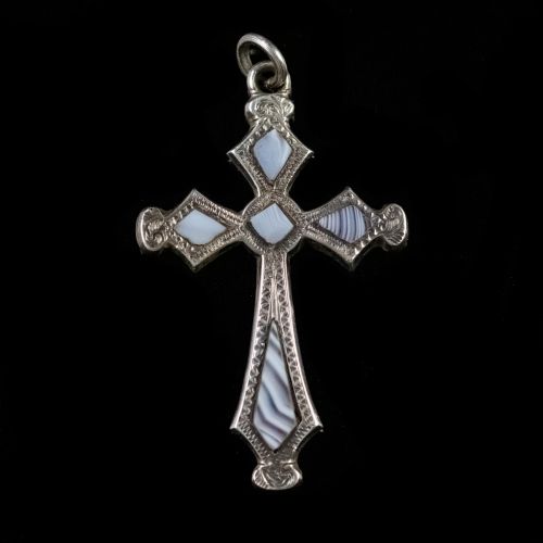 Antique Victorian Scottish Montrose Agate Cross Pendant c.1860