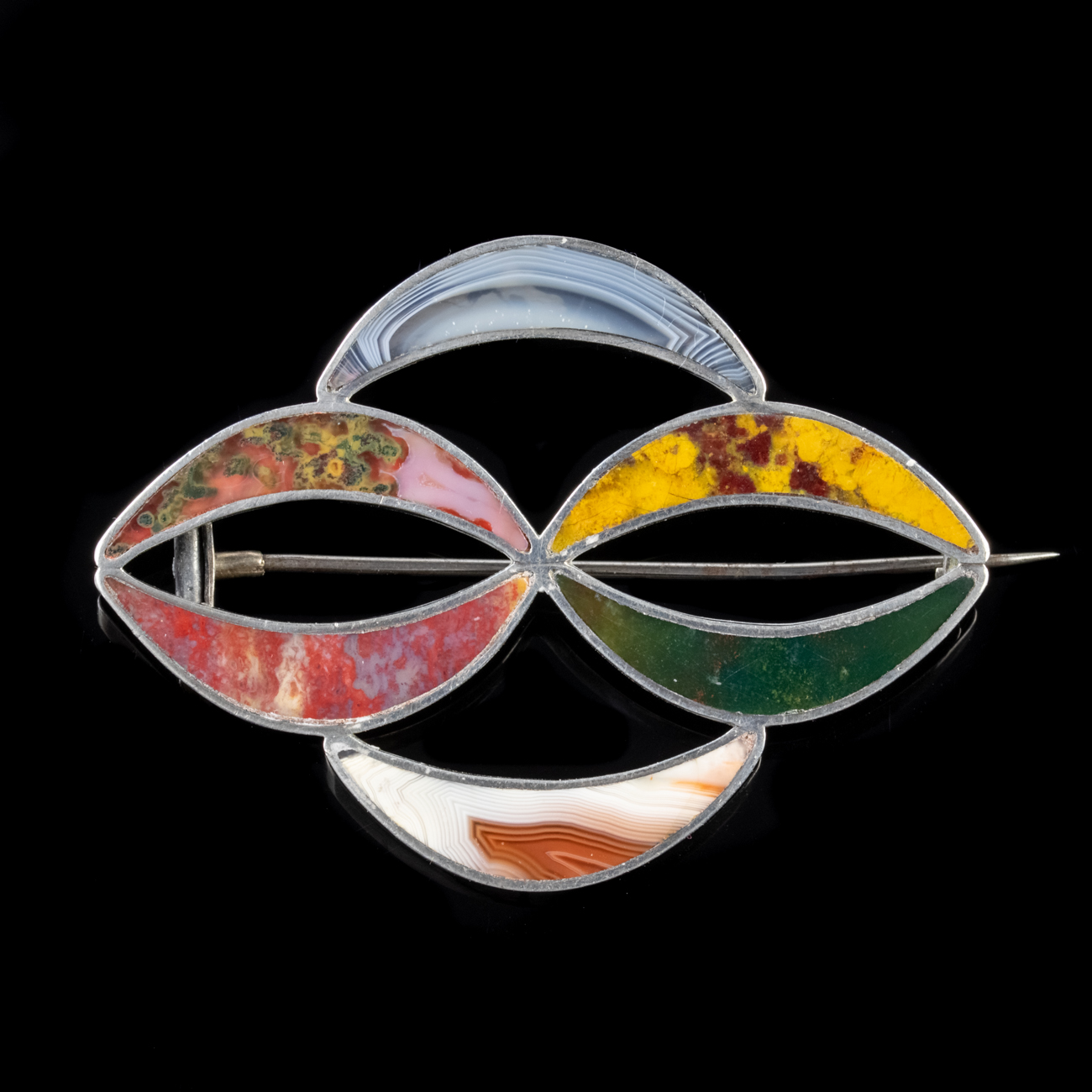 Antique Victorian Scottish Plaid Agate Brooch Silver C.1860