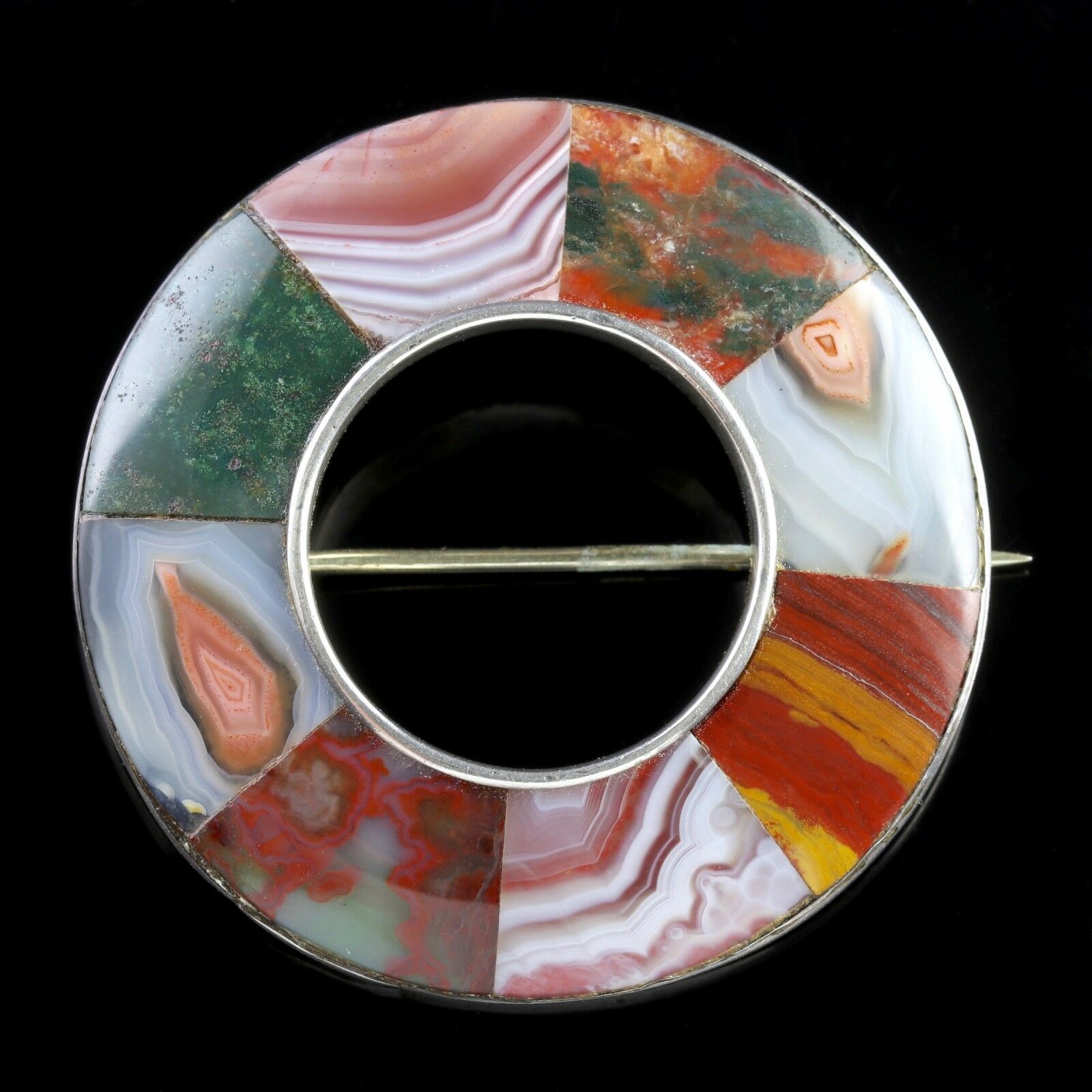 Antique Victorian Scottish Silver Agate Brooch Fell Asleep in Jesus Dated 1891