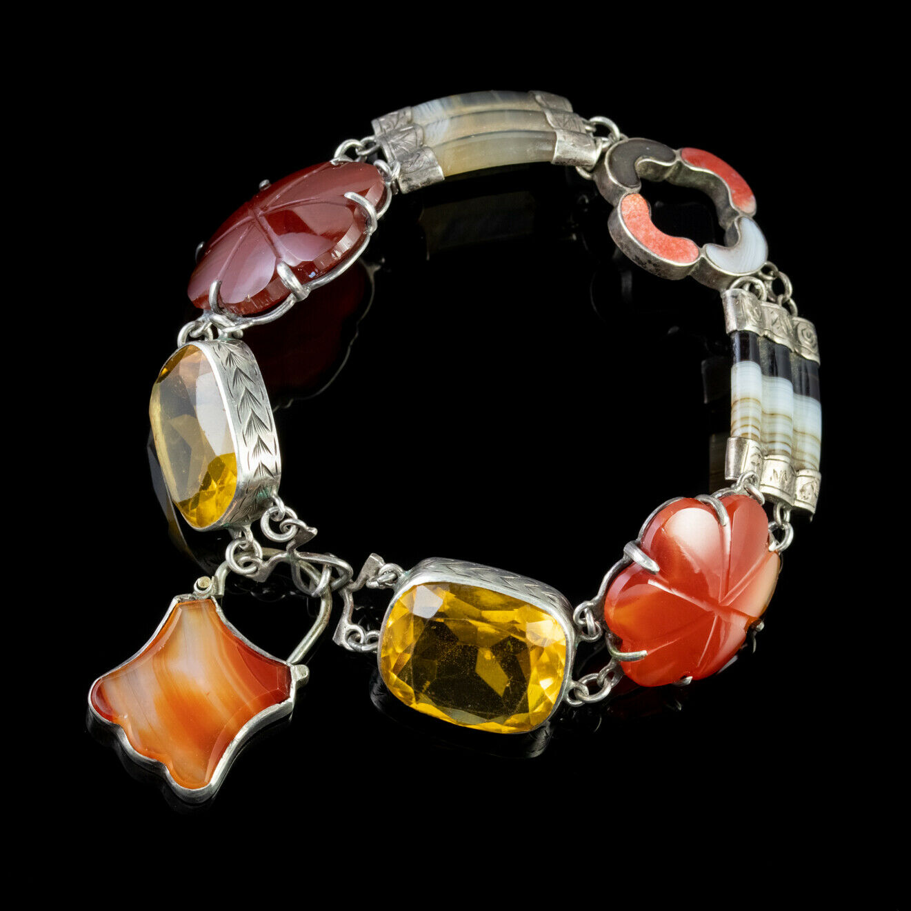 Antique Victorian Scottish Silver Agate Padlock Bracelet c.1860
