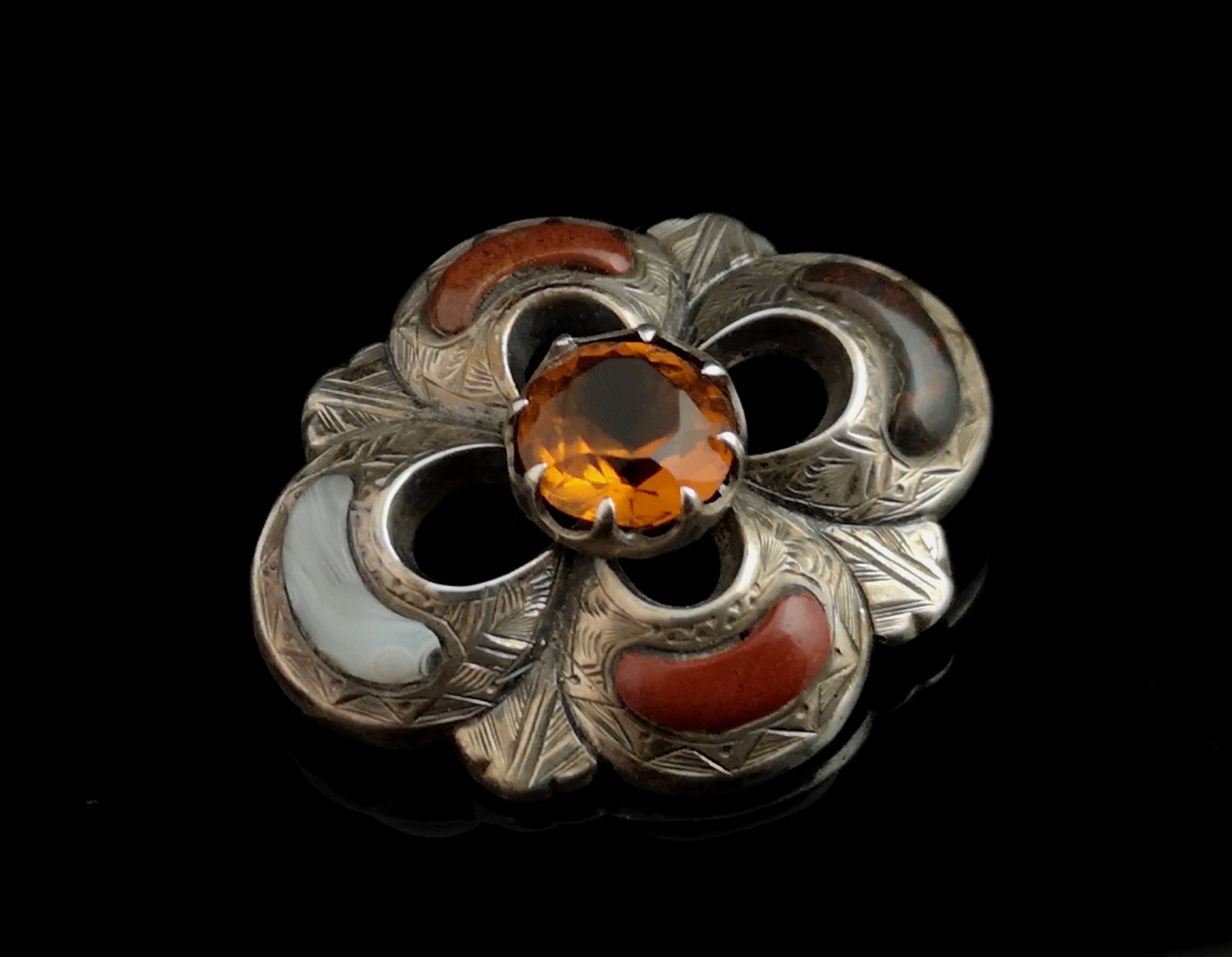 Antique Victorian Scottish Silver Brooch Agate