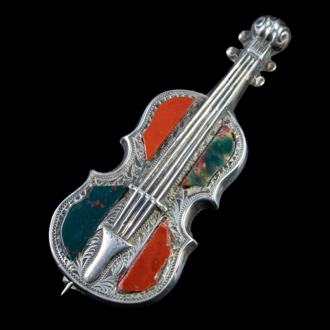 Antique Victorian Scottish Silver Cello Agate Brooch c.1860