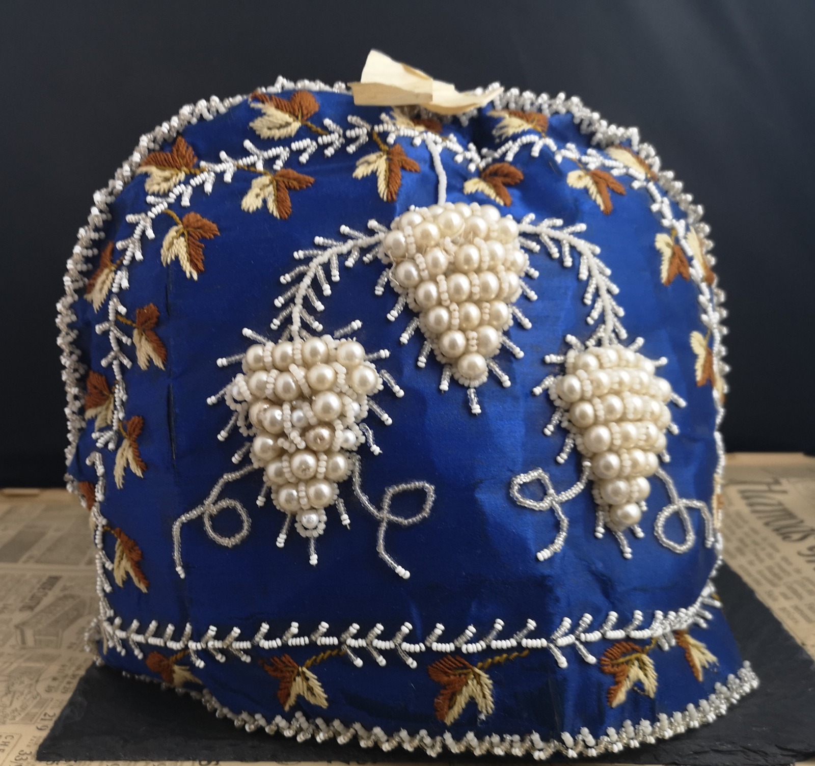 Antique Victorian Silk Tea Cosy, Beadwork & Embroidery, Grapes