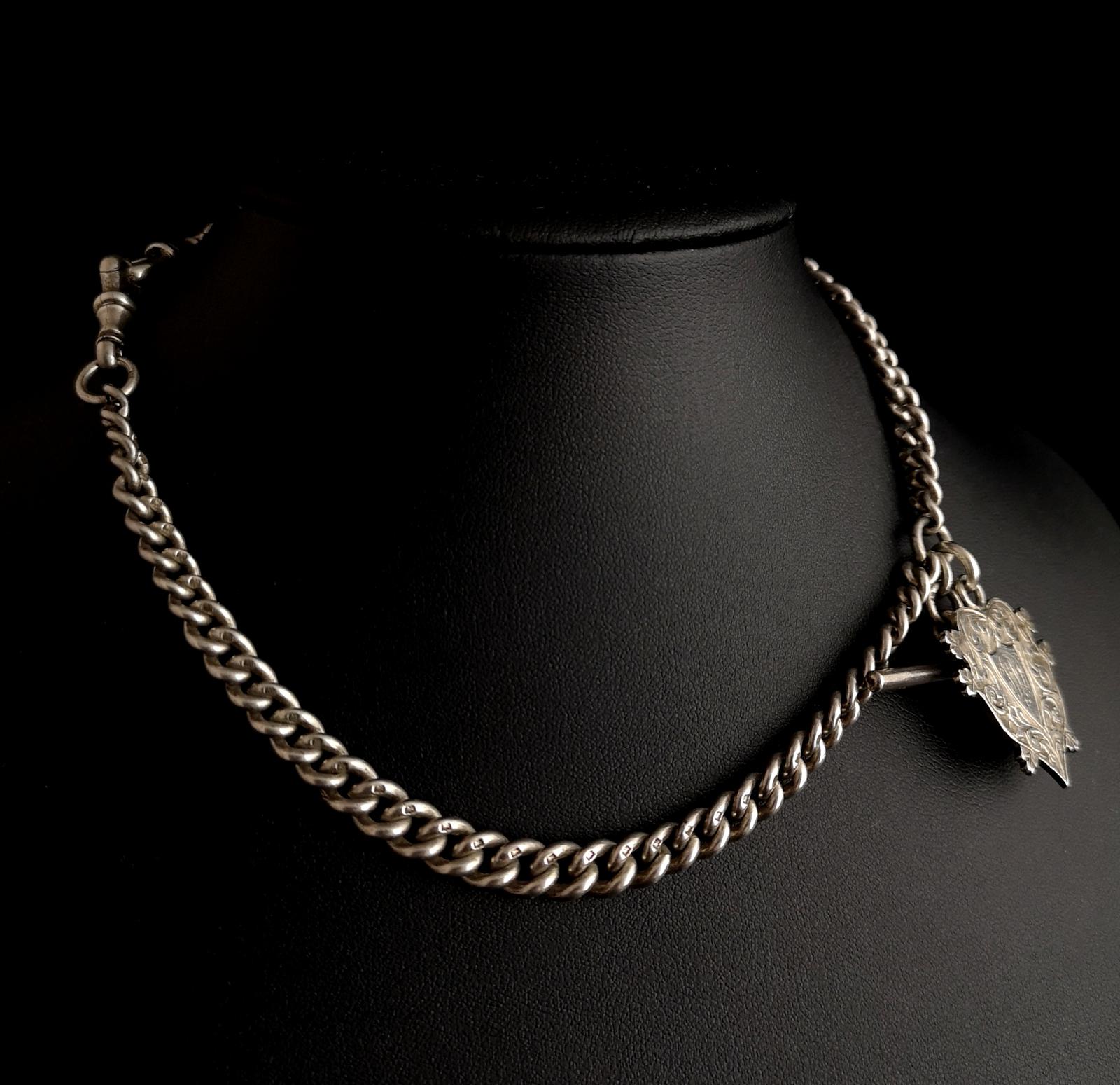 Antique Victorian Silver Albert Chain, Double, Watch Chain