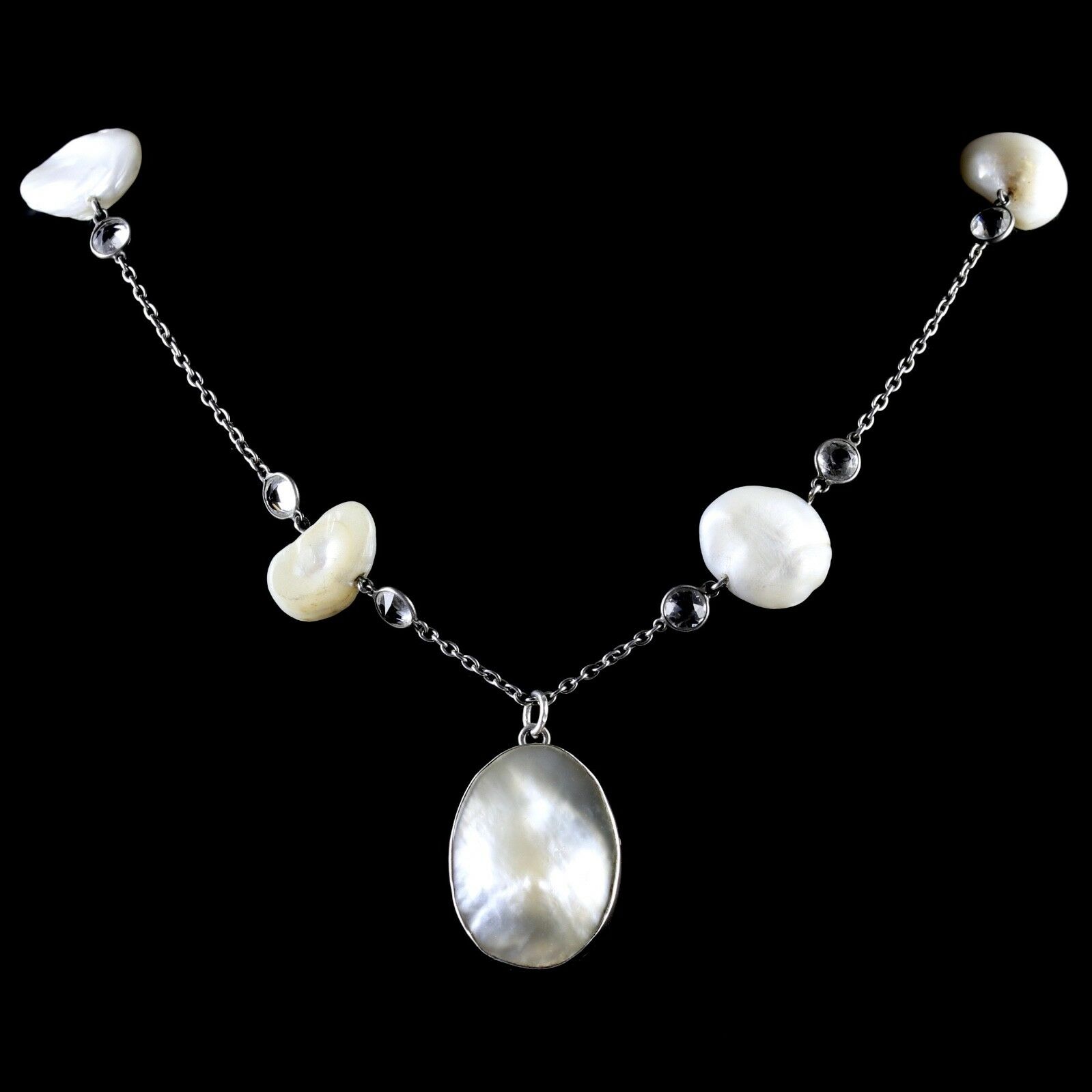 Antique Victorian Silver Blister Pearl Pendant Necklace c.1900