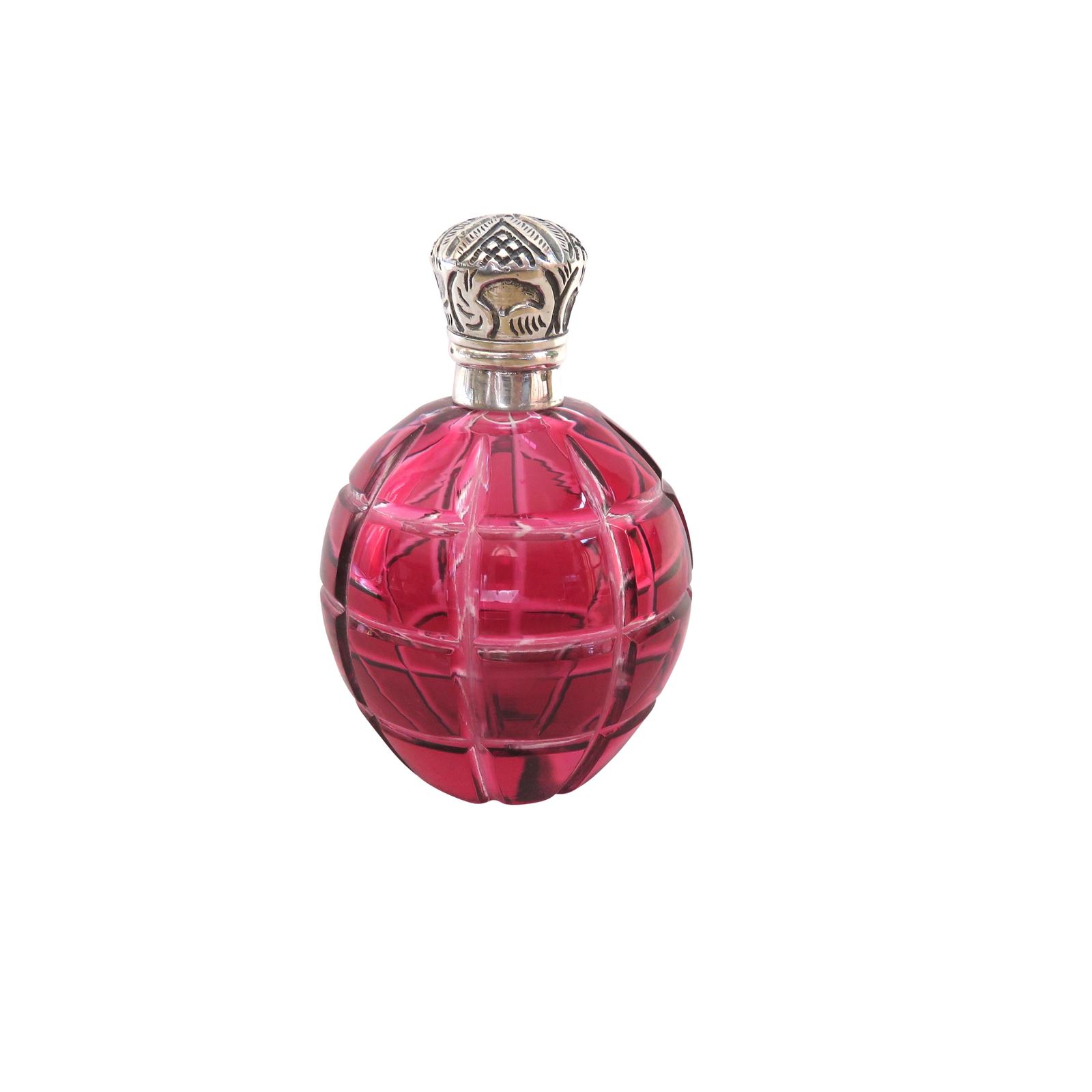 Antique Victorian Silver & Cranberry Cut Glass Scent / Perfume Bottle c.1890