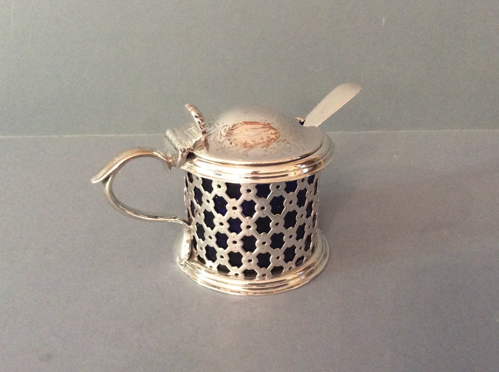 Antique Victorian Silver Drum Mustard with Newcastle Silver Spoon