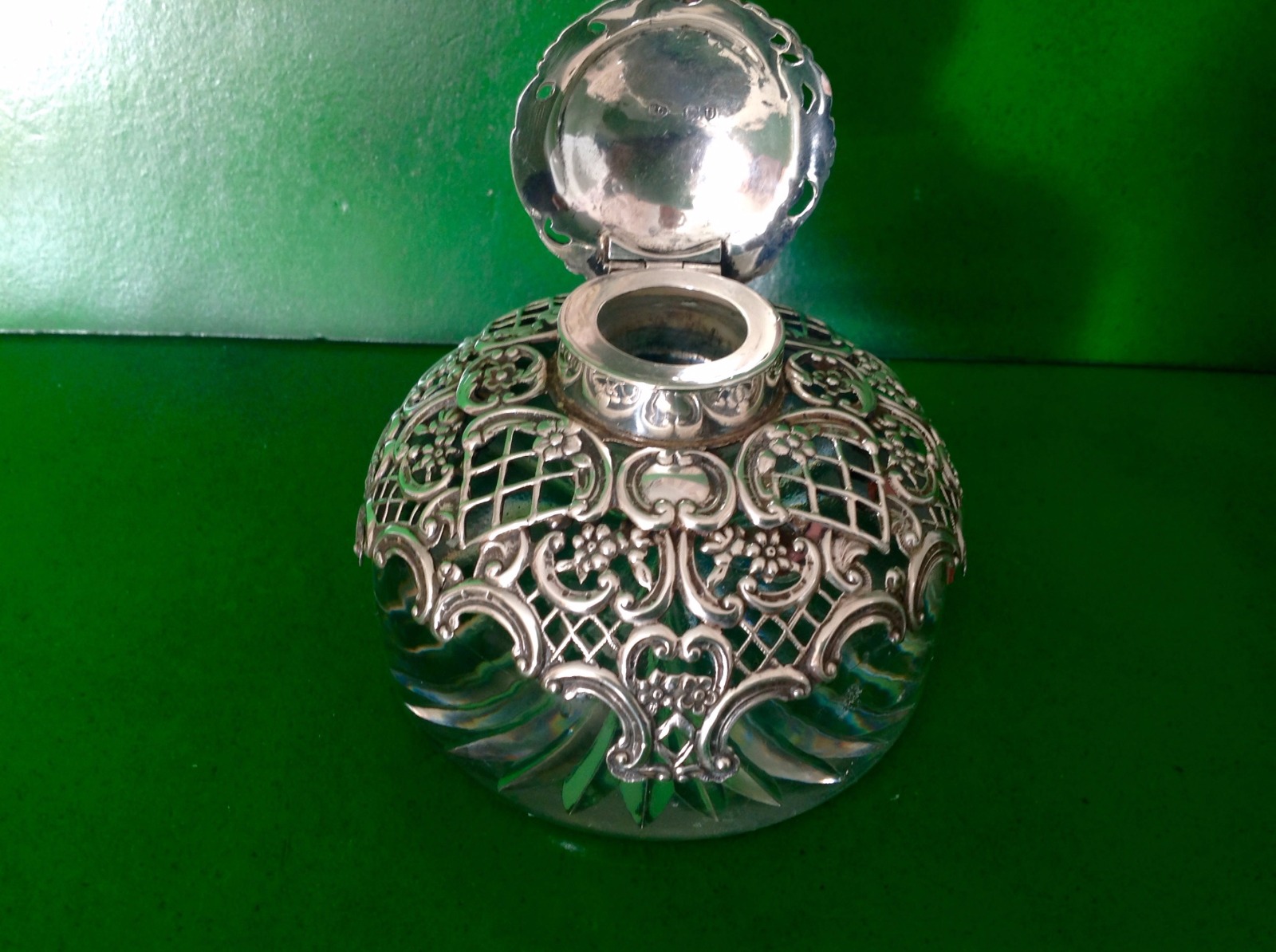 Antique Victorian Silver / Glass Inkwell - Comyns