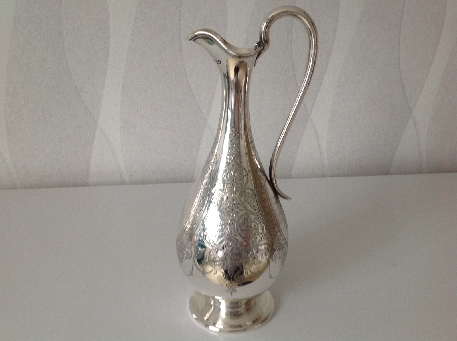 Antique Victorian Silver Lidded Wine Jug / Ewer - 1876
