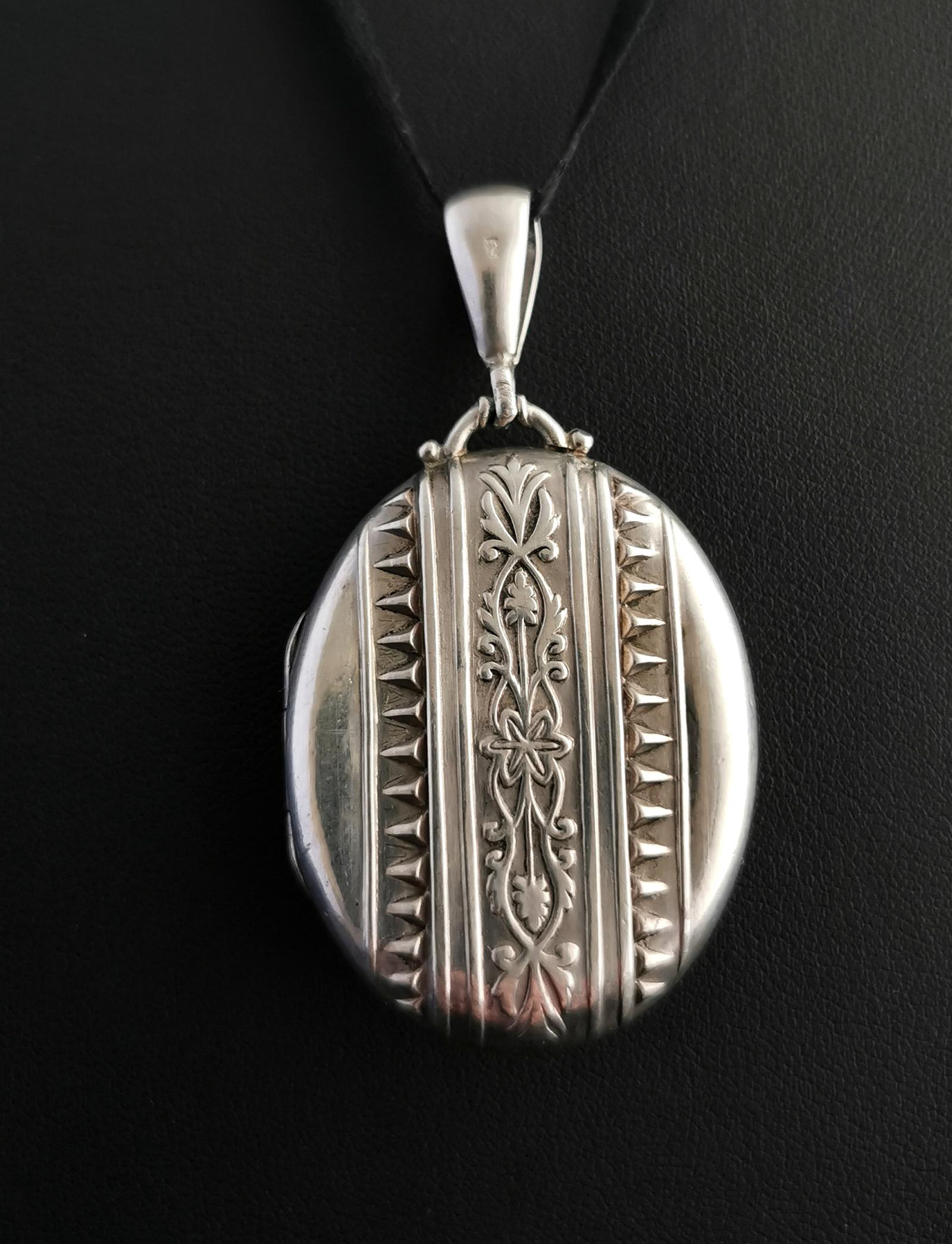 Antique Victorian Silver Locket, Aesthetic Era