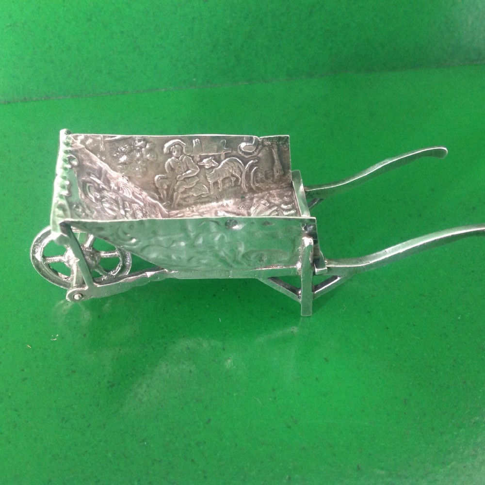 Antique Victorian Silver Miniature Wheelbarrow - 1895