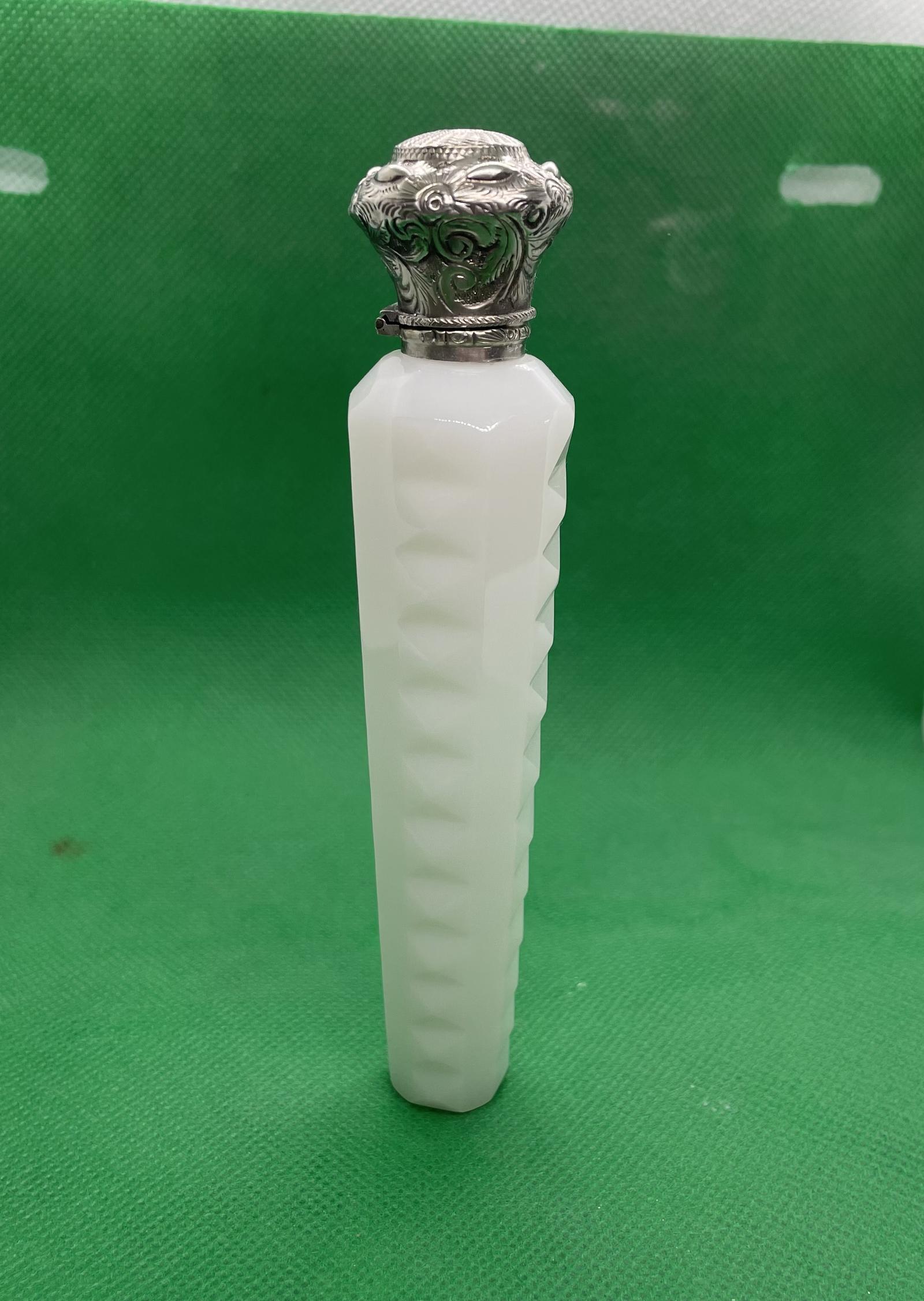 Superb antique, Victorian silver, White Opaline perfume bottle