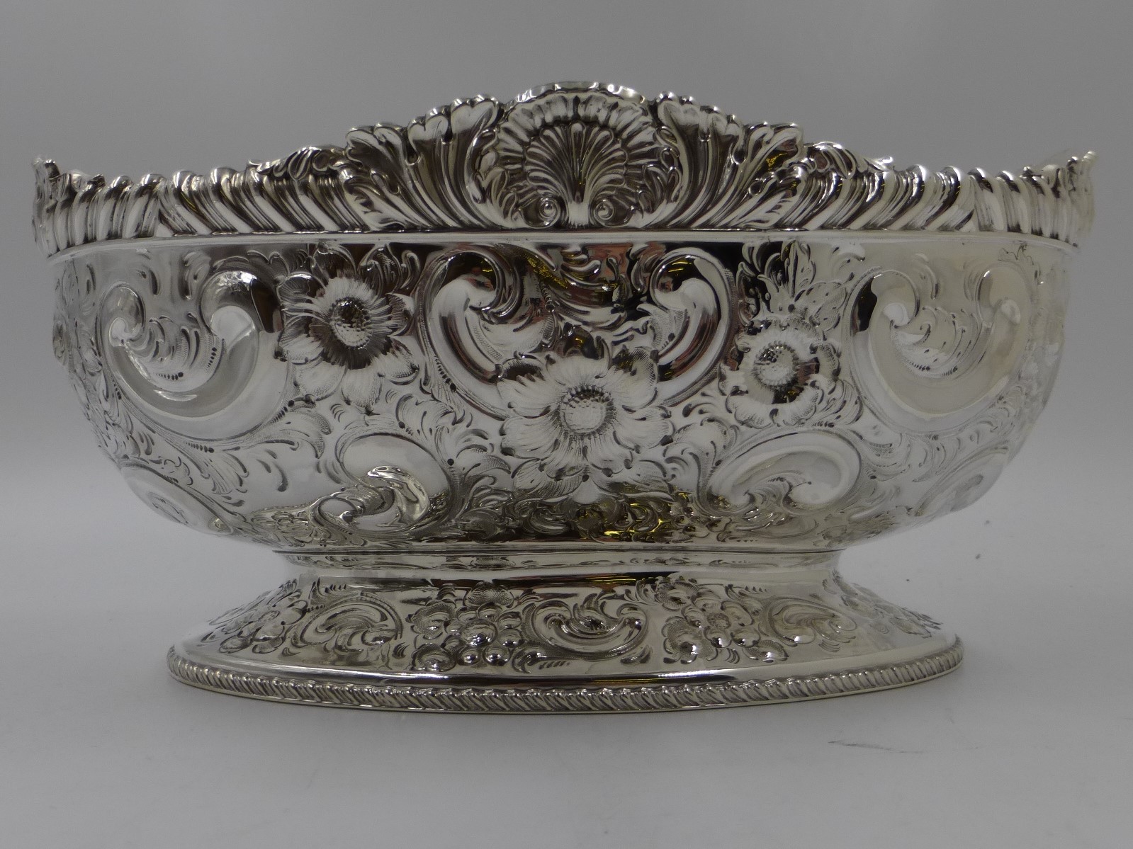 Antique Victorian Silver Oval Bowl, Sheffield 1890