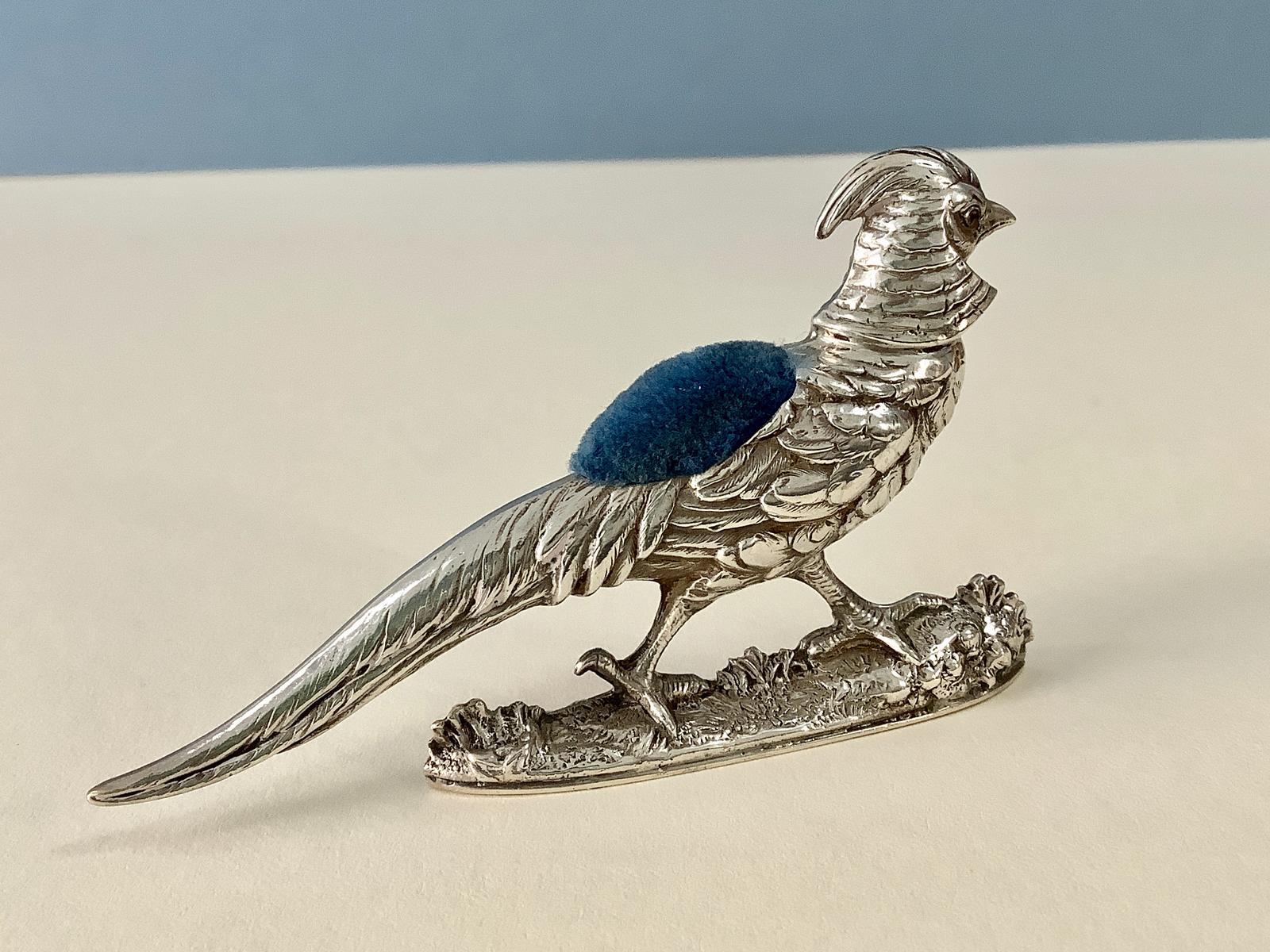 Antique Victorian Silver Pin Cushion - Golden Pheasant