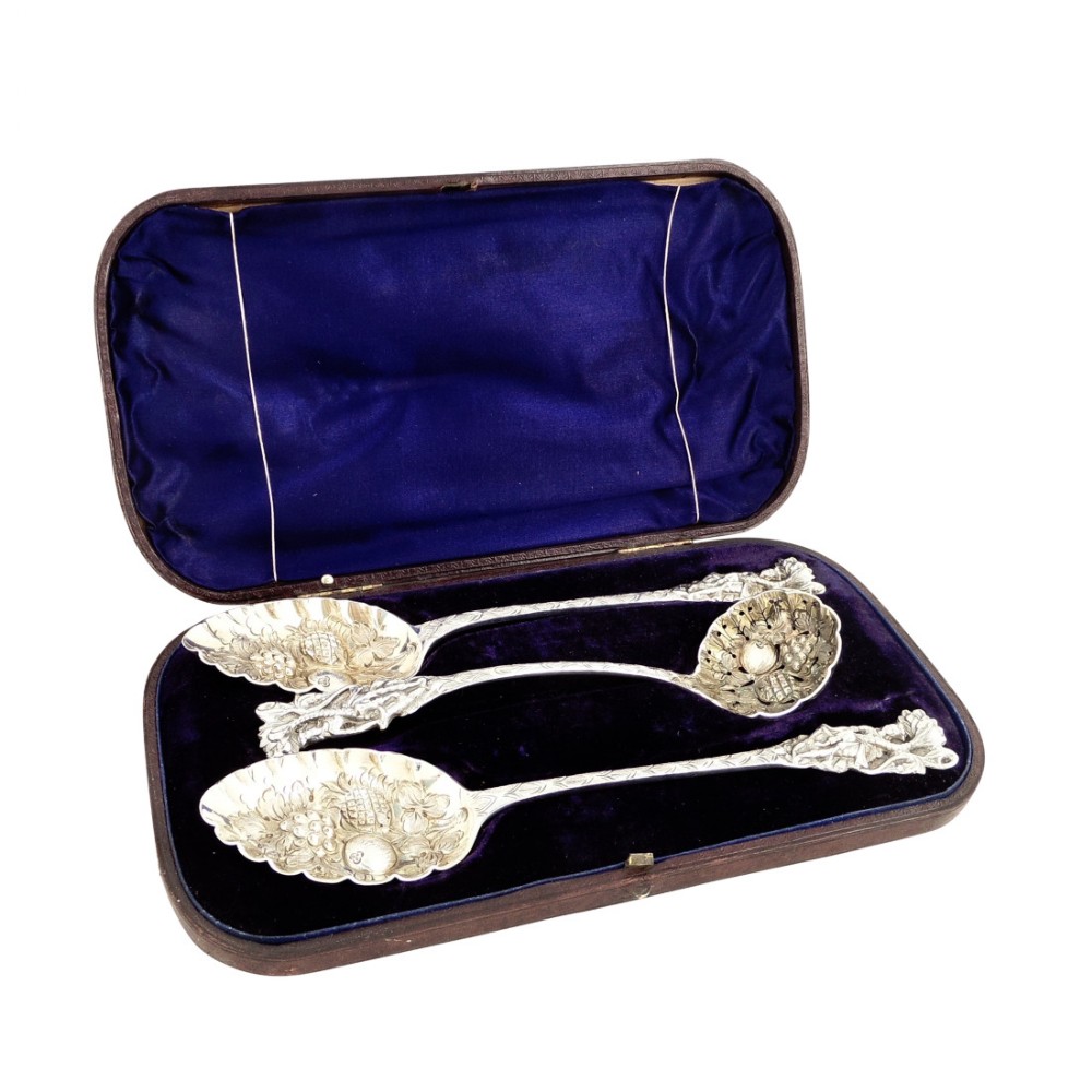 Antique Victorian Silver Plated Berry Spoons & Sifter Spoon in Case