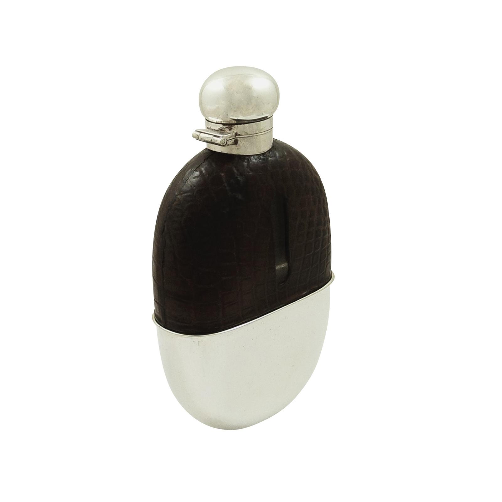 Antique Victorian Silver Plated & Crocodile Hip Flask - Mappin & Webb c.1890