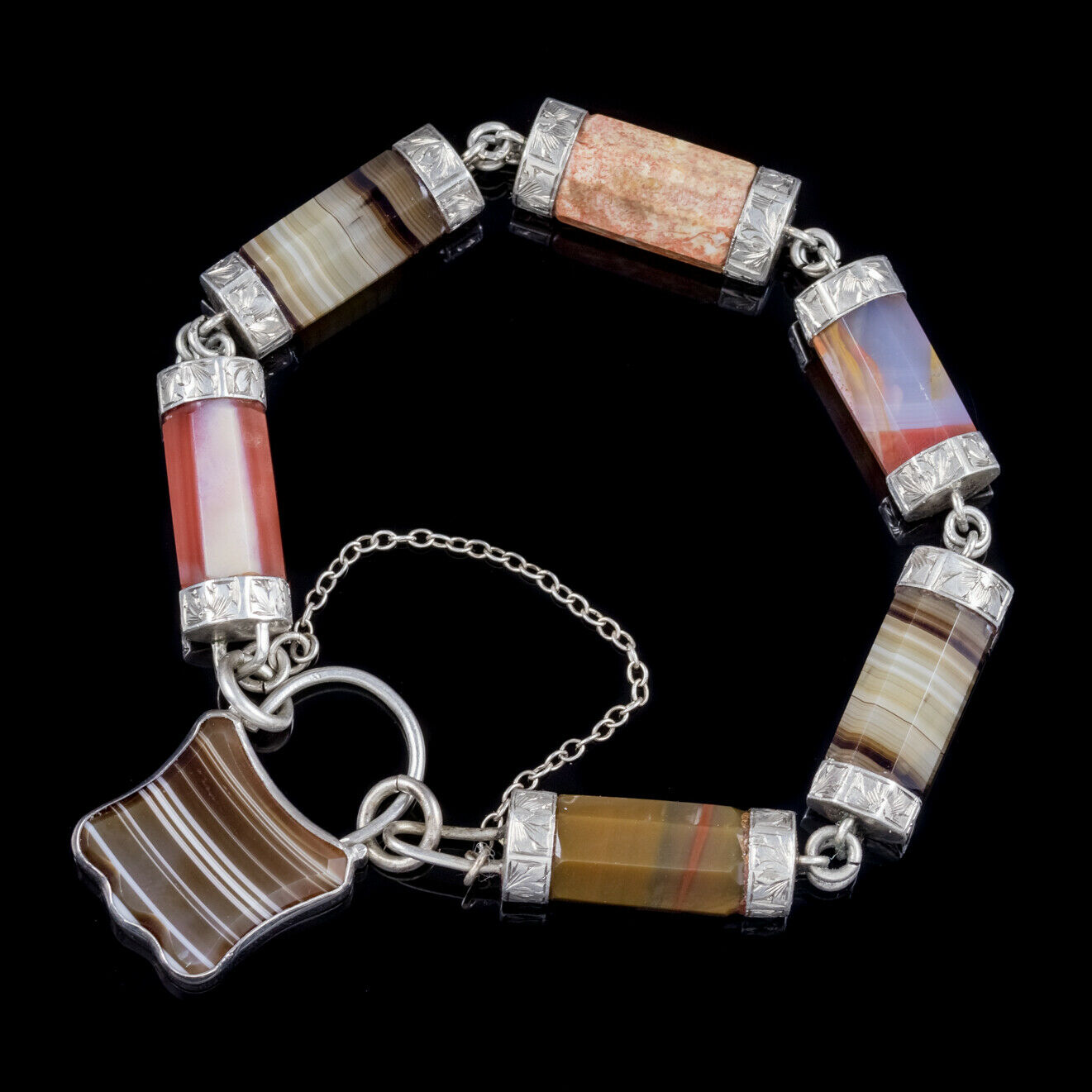 Antique Victorian Silver Scottish Agate Padlock Bracelet c.1860