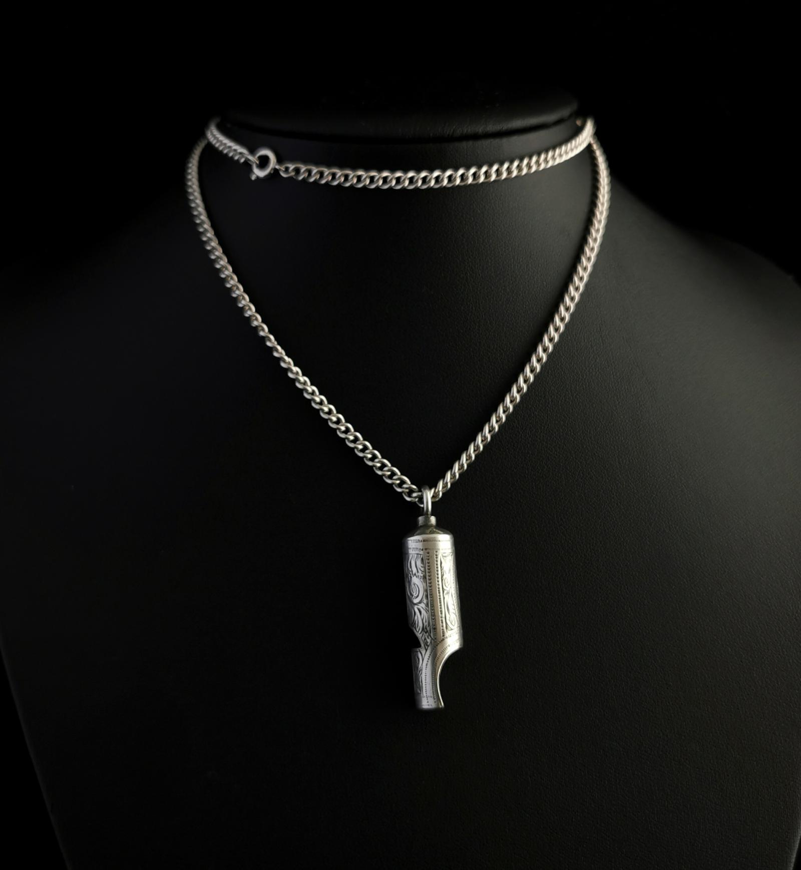 Antique Victorian Silver Whistle Pendant
