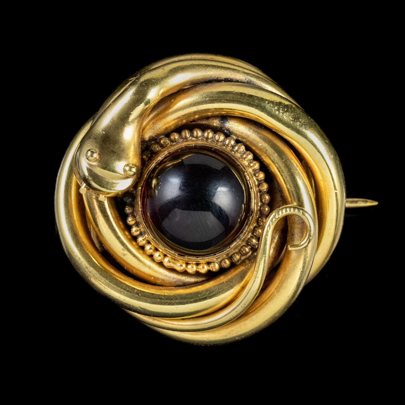 Antique Victorian Snake Brooch Glass Garnet 18ct Gold Gilt c.1880