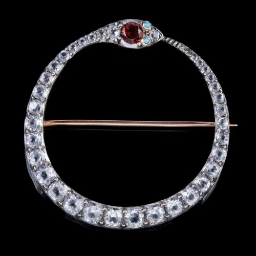 Antique Victorian Snake Brooch Silver Gold Fire Opal Paste c.1850