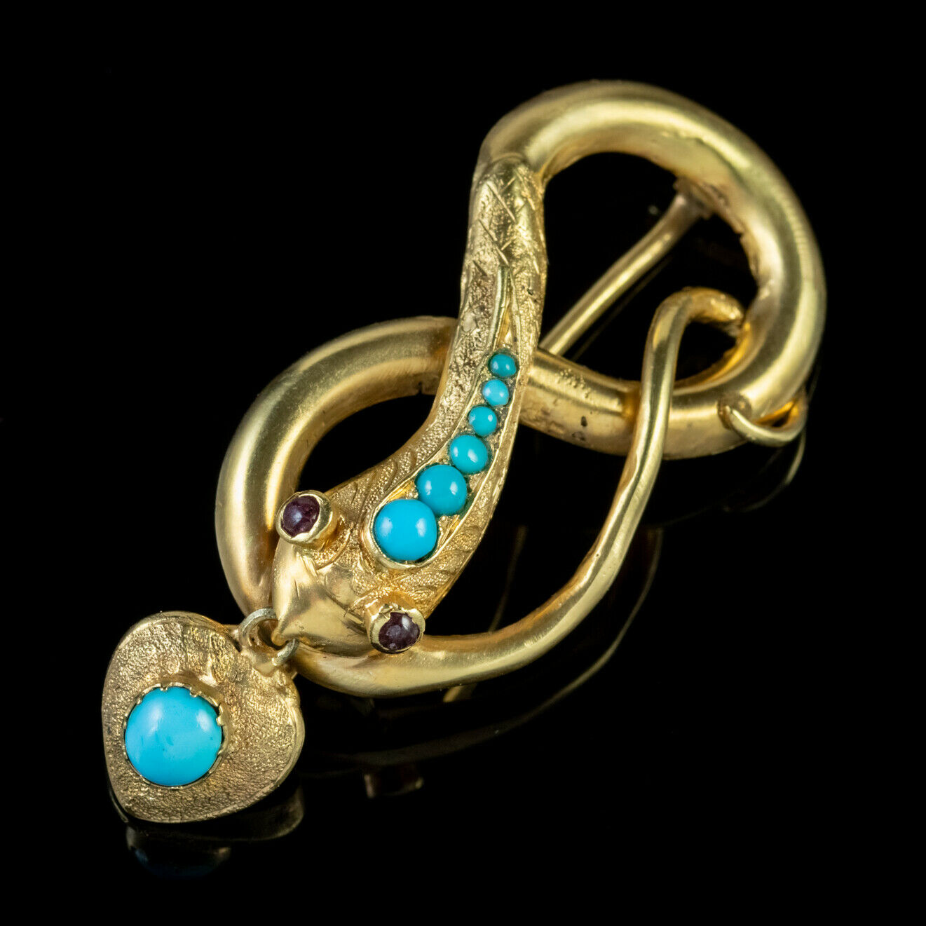 Antique Victorian Snake Brooch Turquoise Heart 18ct Gold c.1880