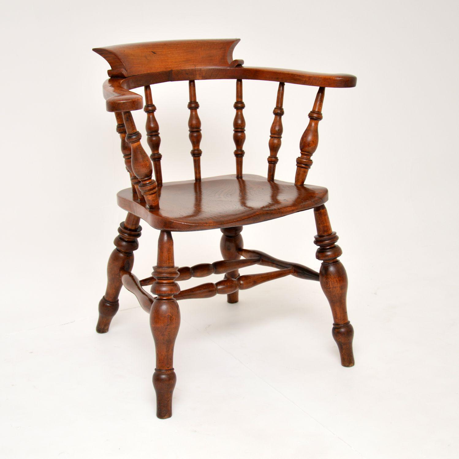 Antique Victorian Solid Elm Captains Desk Chair (1 of 11)