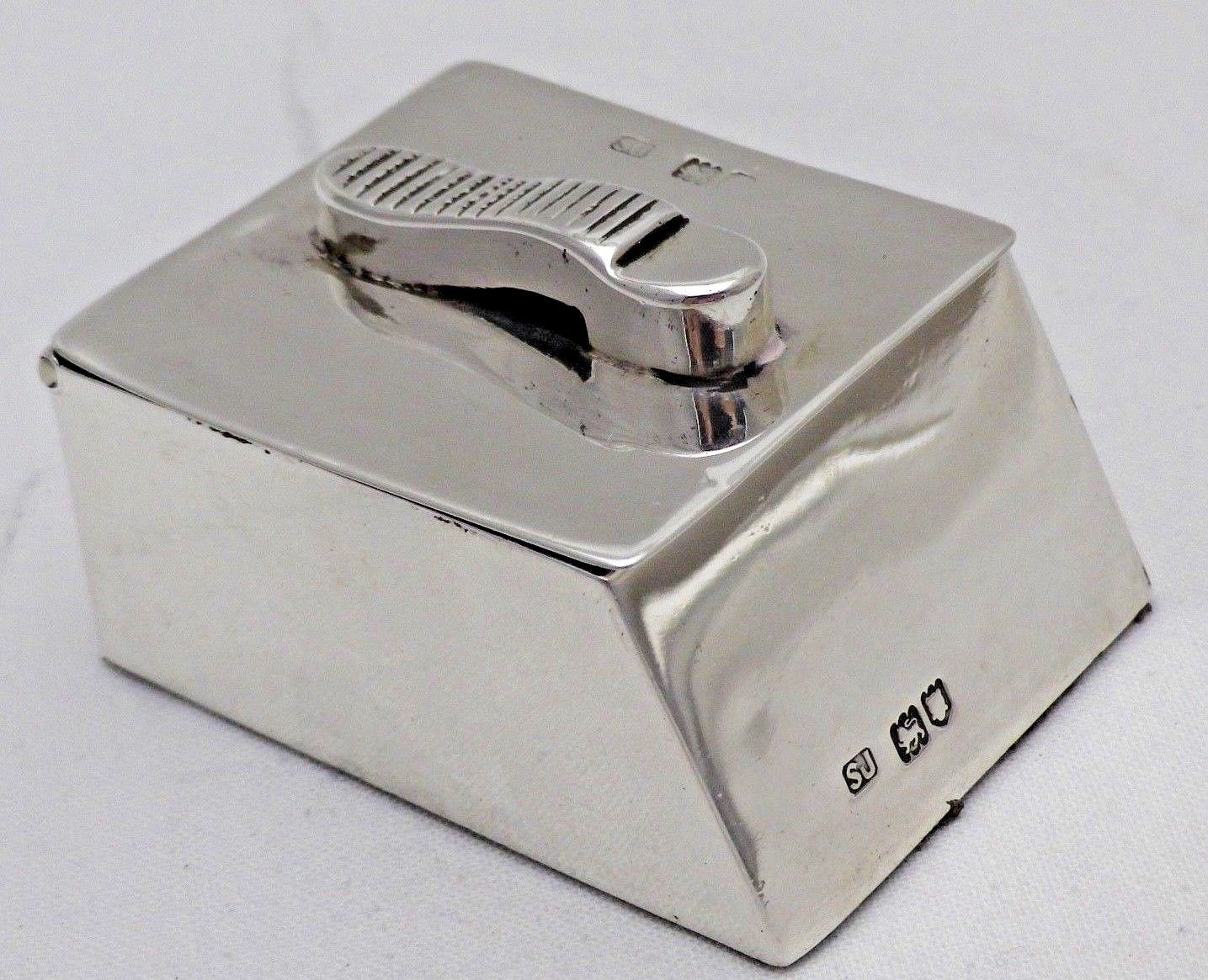Antique Victorian Solid Silver Novelty Stamp Case Shoe Shine Box
